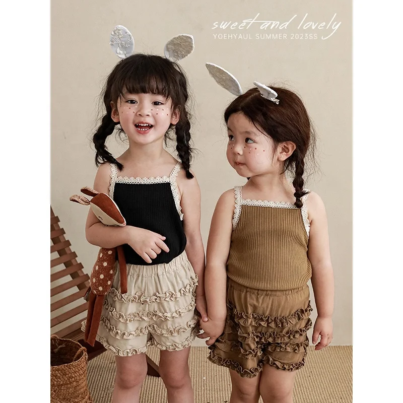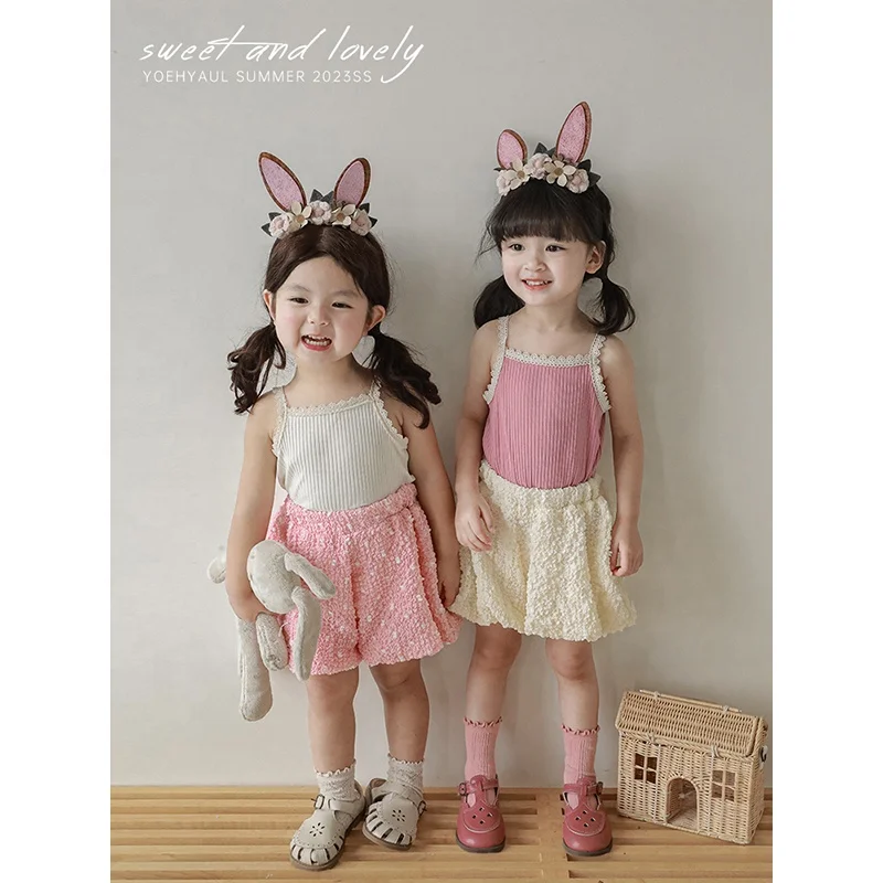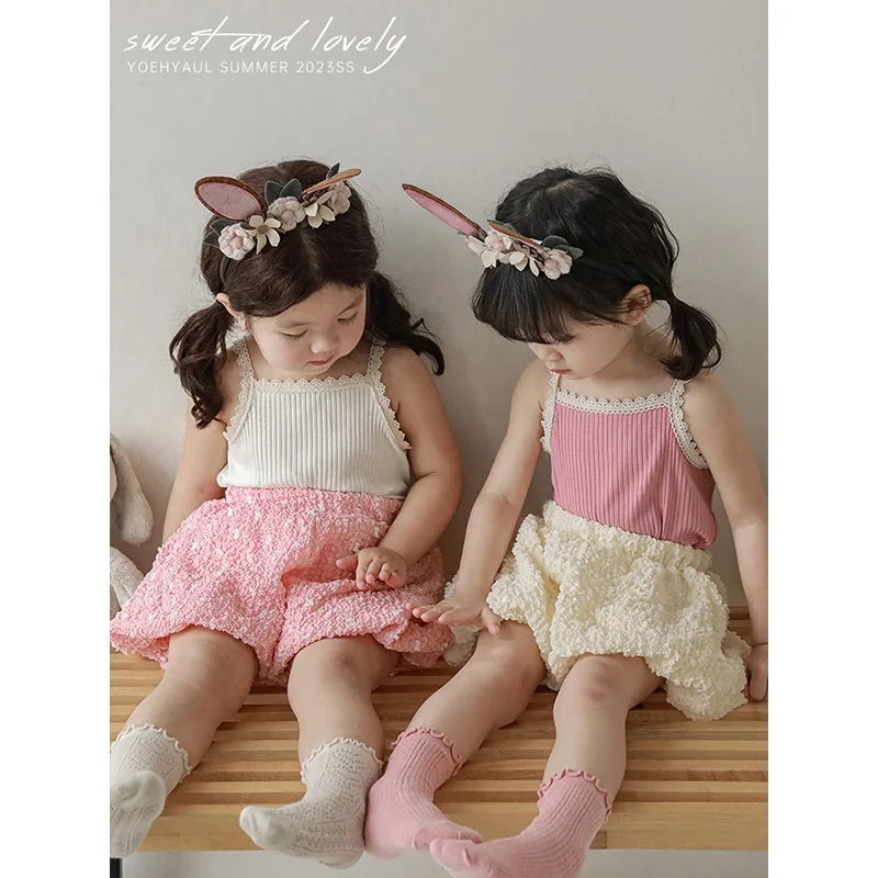 Four Colors Knitted Rib Elegant Summer Kids Girls Tank Baby Girl Cozy Solid All-Match Sleeveless T-shirt Hot Sale Kid Clothing