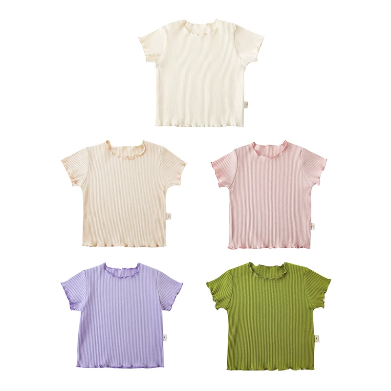 YOEHYAUL Summer Solid Color Children Tshirt Soft Knit Blank Kids T Shirts Short Sleeve Child T-shirt Top