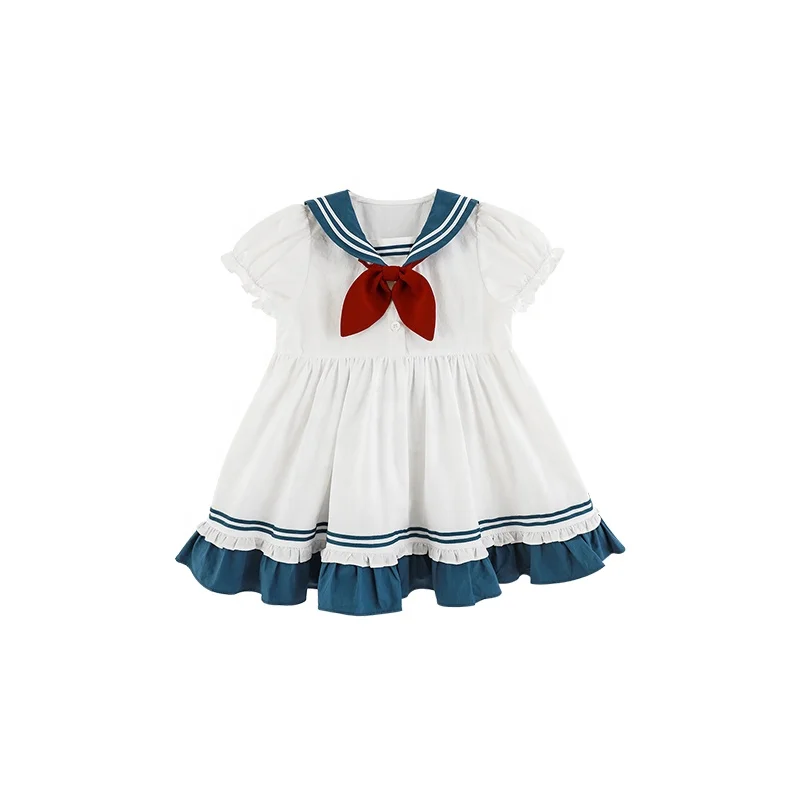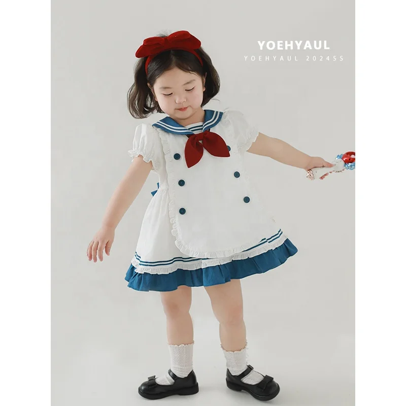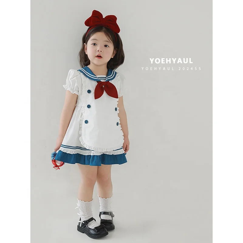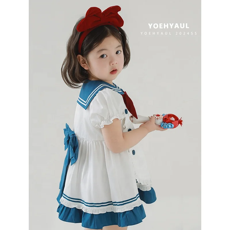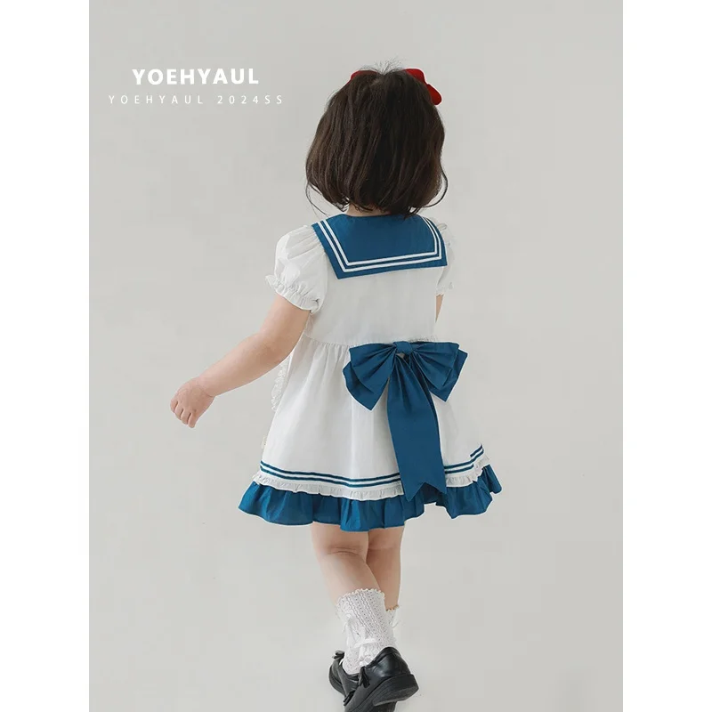 YOEHYAUL Lolita-style Navy Lapel Sailor Ready Made Kids Dress Manufacturers Custom Logo Sweet Toddler Baby Girls Dresses Summer