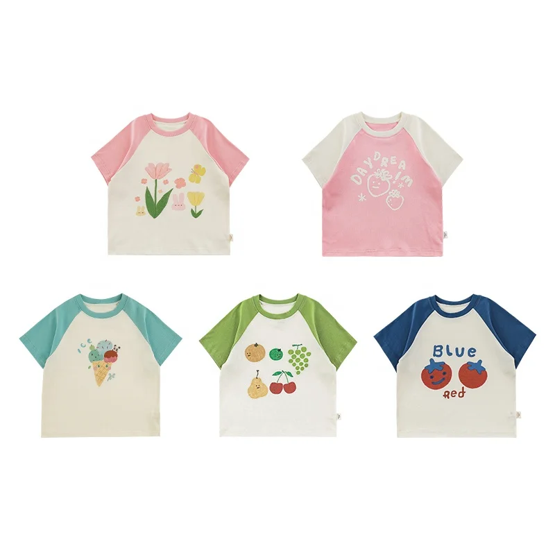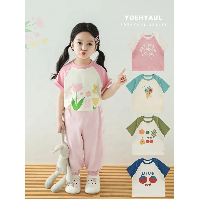 YOEHYAUL LX0047 Fashion Custom Design Cartoon Print Kids Girls T Shirt Child Girls Tshirts and Tops Toddler Oversized T-shirts