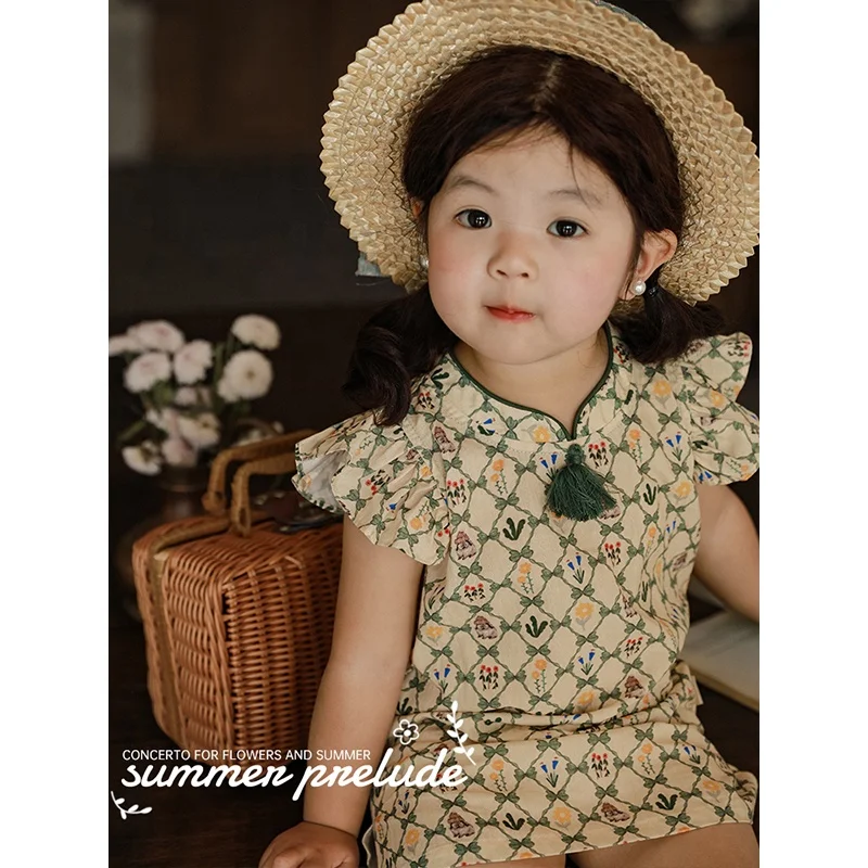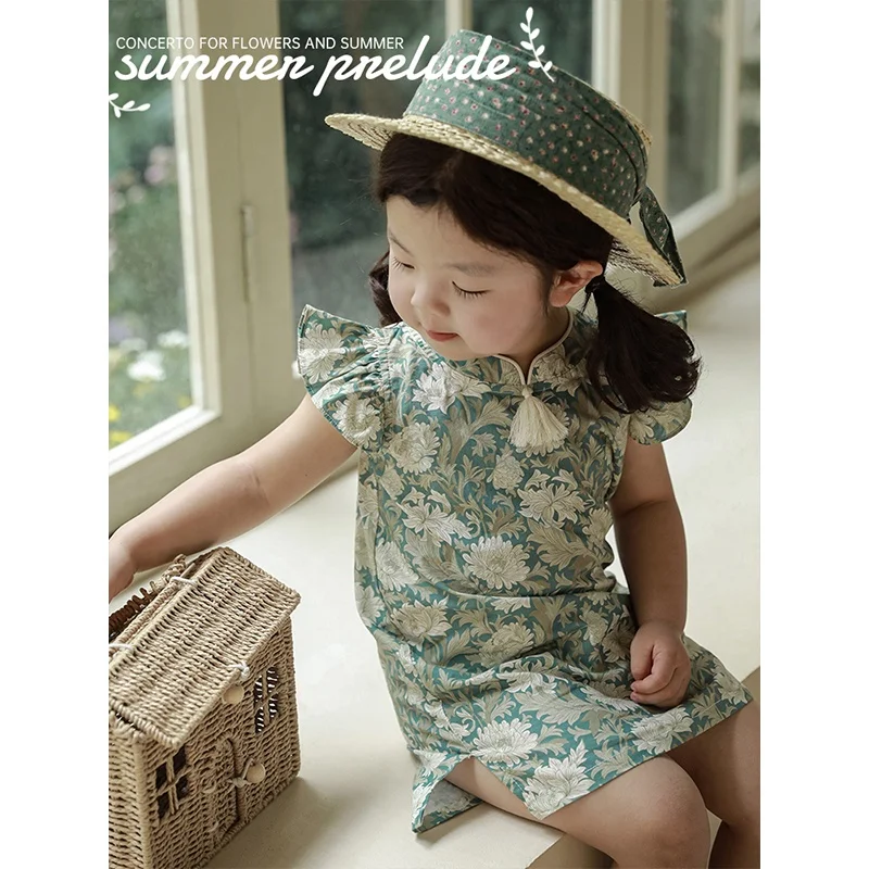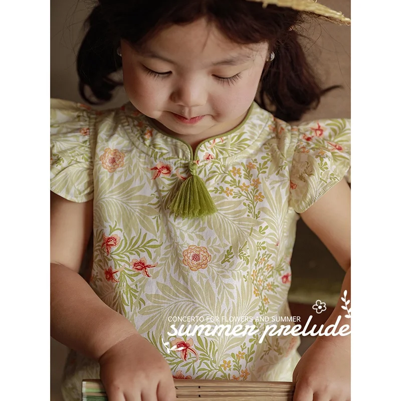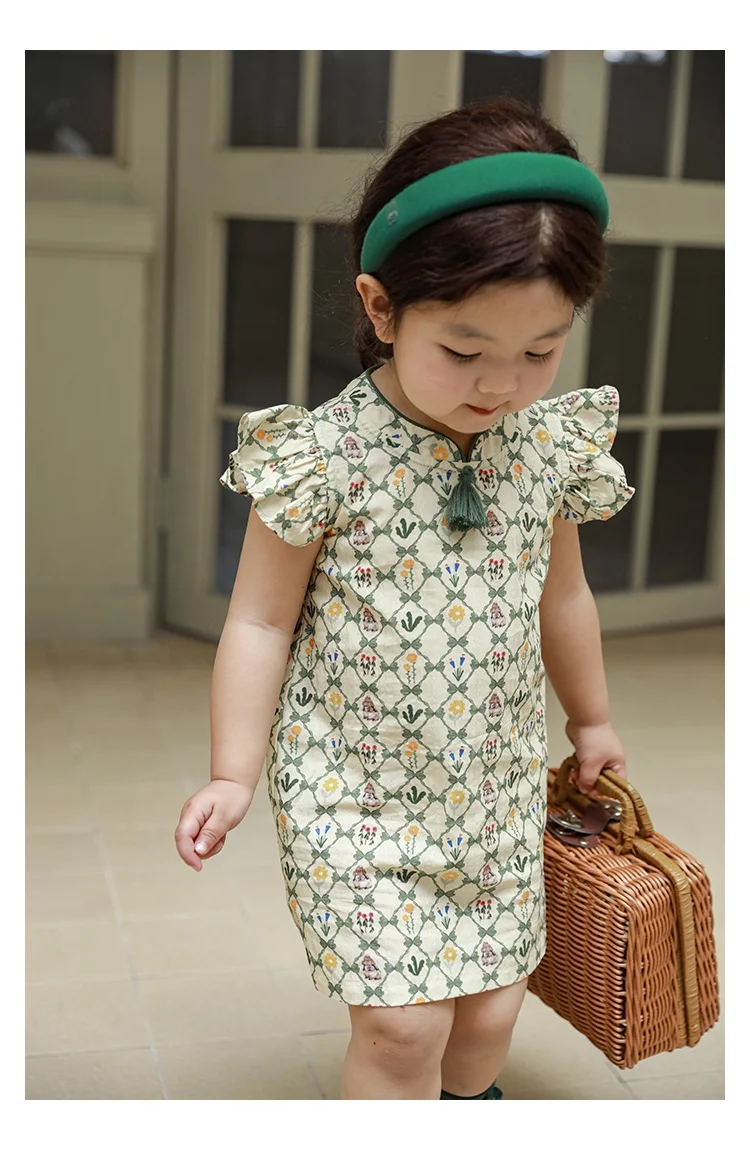 Qipao Tassel Sleeveless Cheongsam Summer Baby Flower Dresses Custom High Quality Wholesale Pure Cotton Kids Girls Dress Clothing