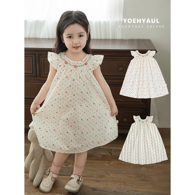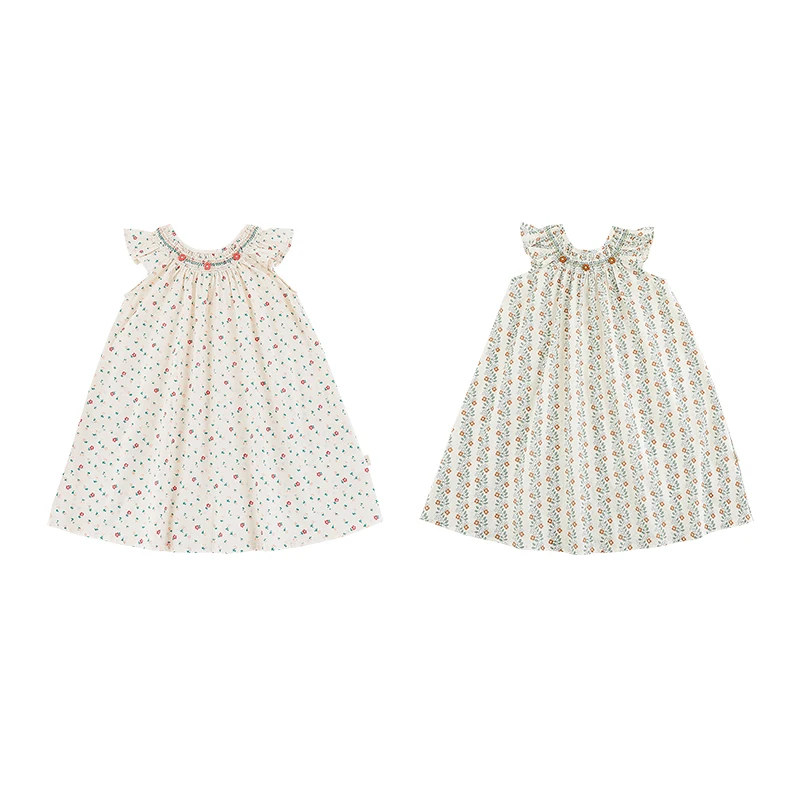 YOEHYAUL HX0005 NO MOQ High Quality Floral Beby Dress Girl Sweet Sleeveless Elegant Cotton Fashion Dress for Kids