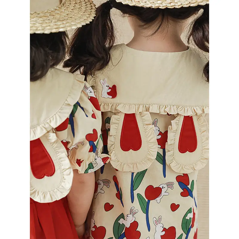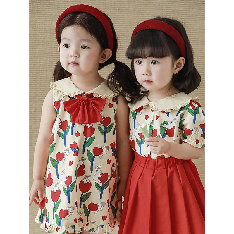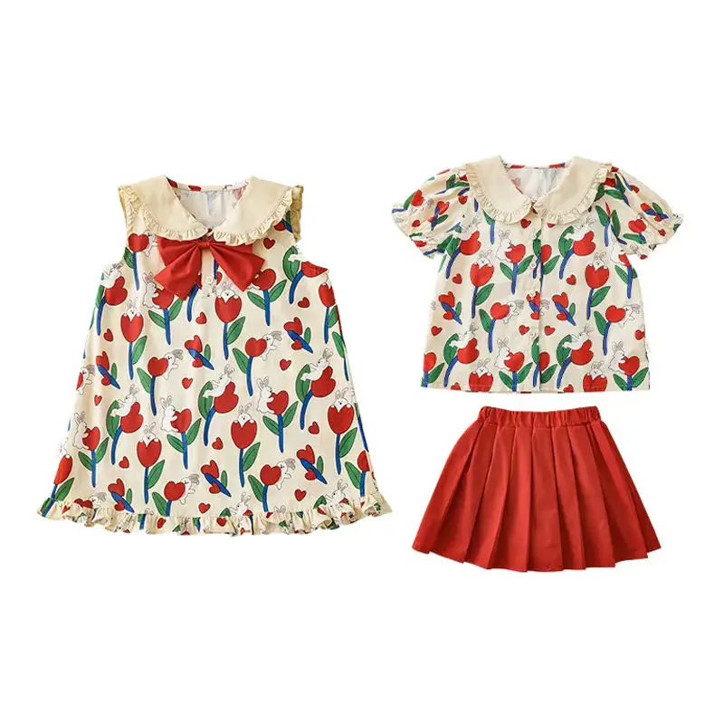 Girls Summer Apparel Set Customizable Cute Top and Skirt 3D Embroidery Fashion Outfit for Kids OEM