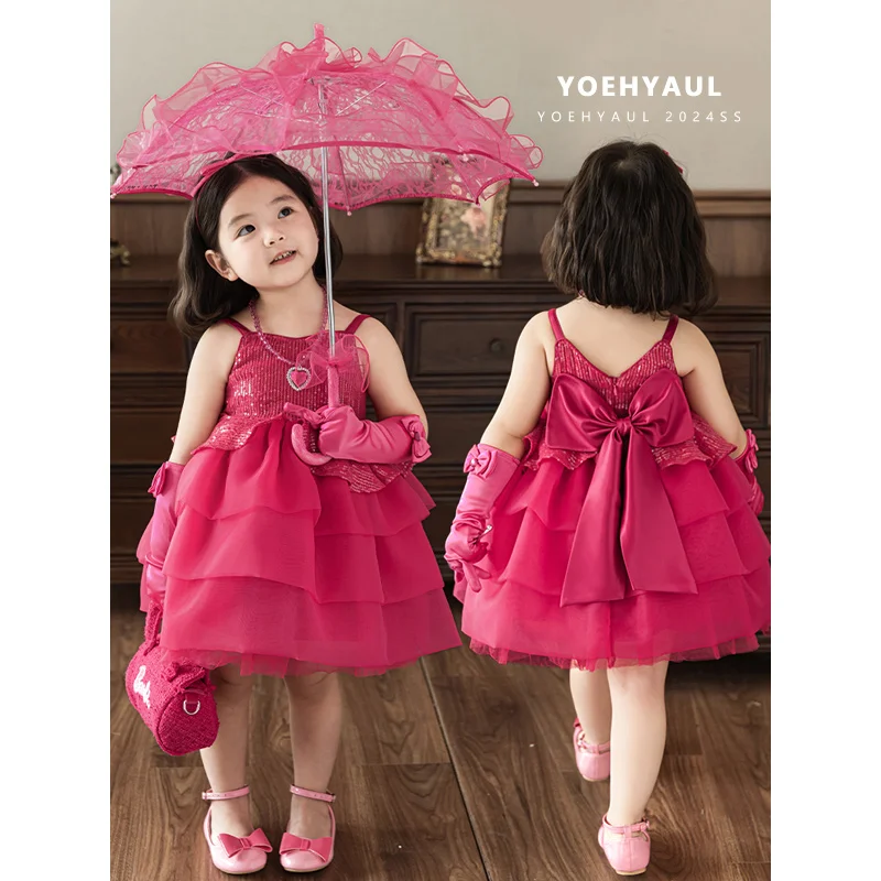 YOEHYAUL ZX0018 Little Kids Sequin Elegant Birthday Princess Dress for 7 Year Old 1 Year Baby Girl Latest Children Dress Designs