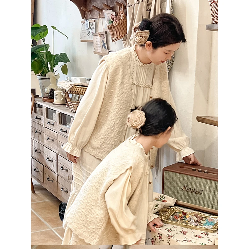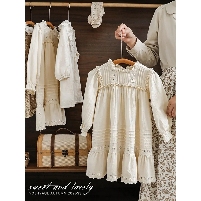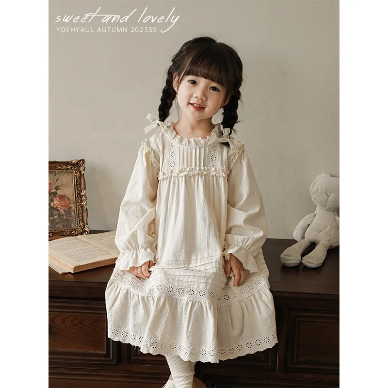 New Arrival Autumn Bohemian Style Pure Cotton Dresses Beige Hollow-out Garment Girls High Quality Wholesale Kids Girls Dress