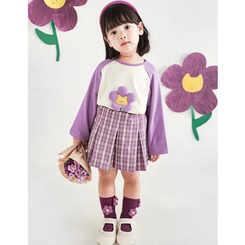 Wholesale Girls Tops and T Shirt 2022 Autumn Long Sleeve T Shirt Kids 3D Flower Cotton Girls T-shirts