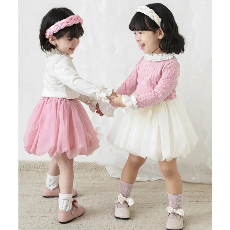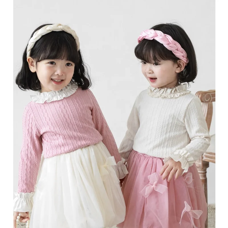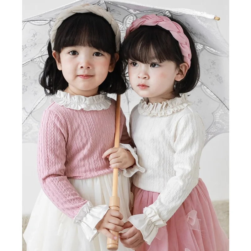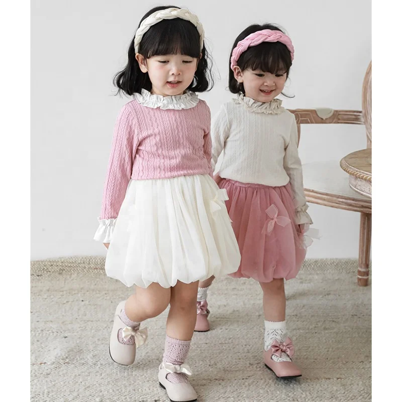 Autumn Knitted Girls Tops Long Sleeve Baby T Shirt Princess Lovely Boutique Kid Girls T-shirts