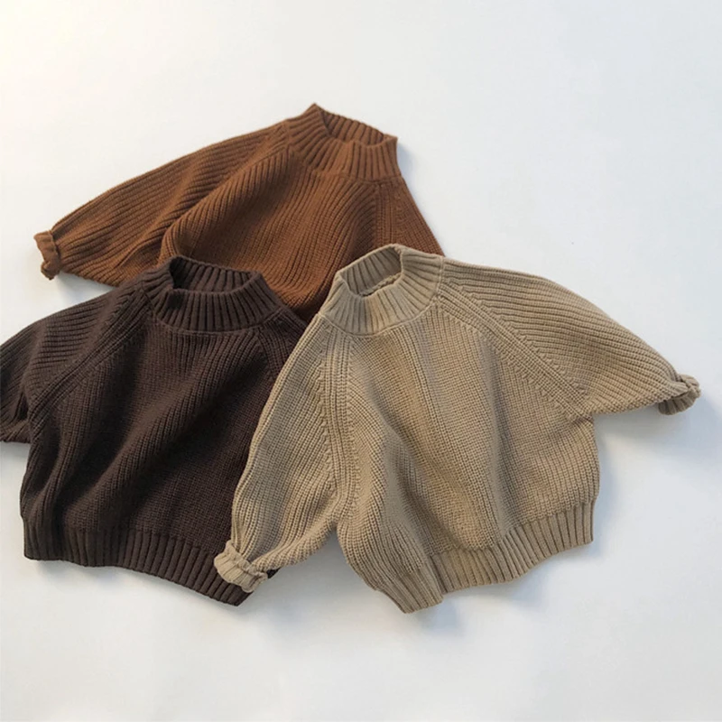 Solid Color Thick Soft Baby Boys Chunky Knit Sweater Baby Custom Baby Girl Turtleneck Pullovers Kid Oversized Sweaters