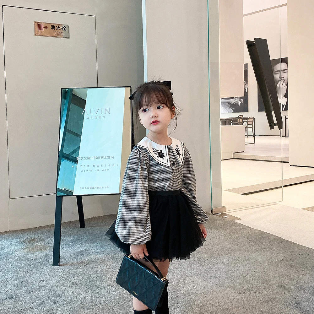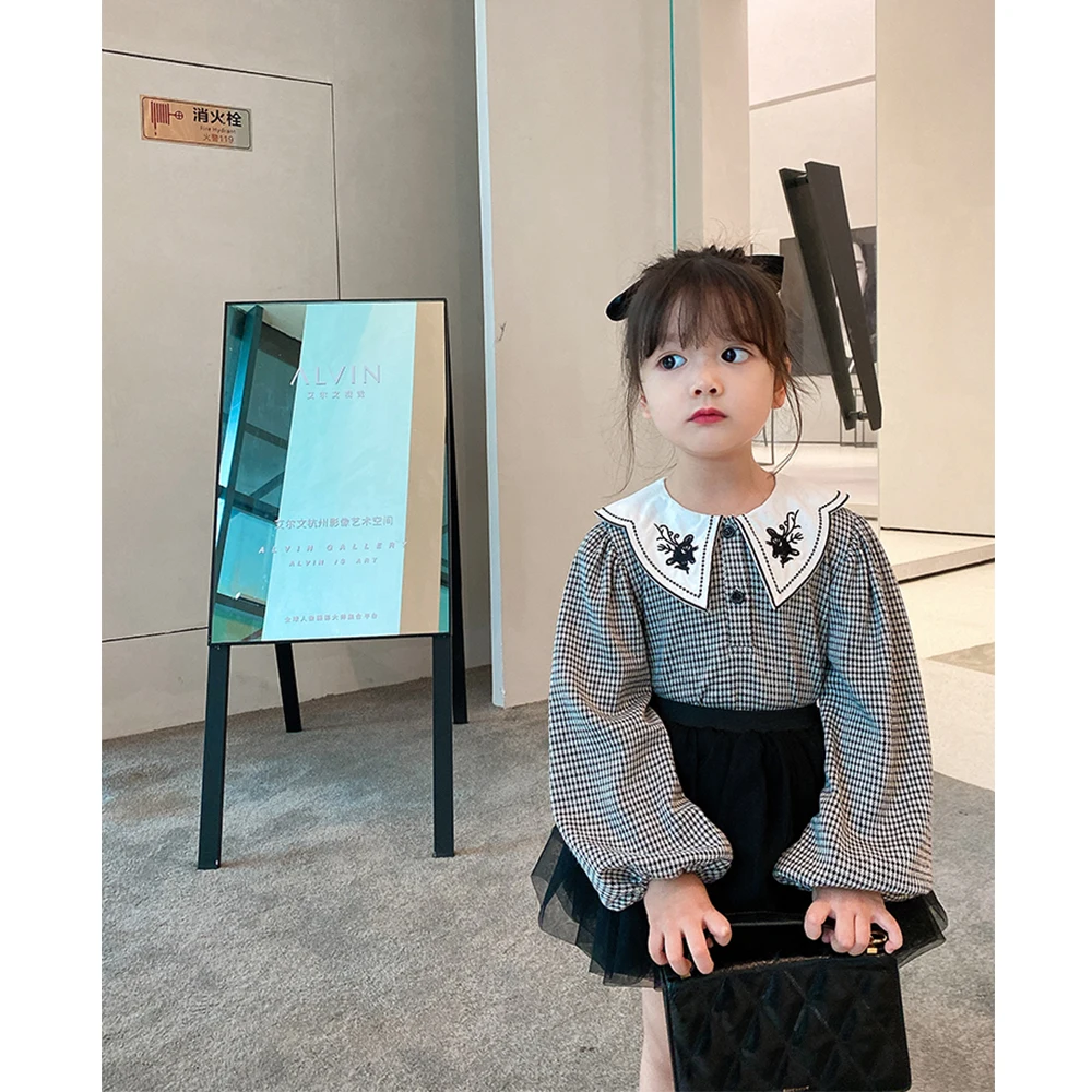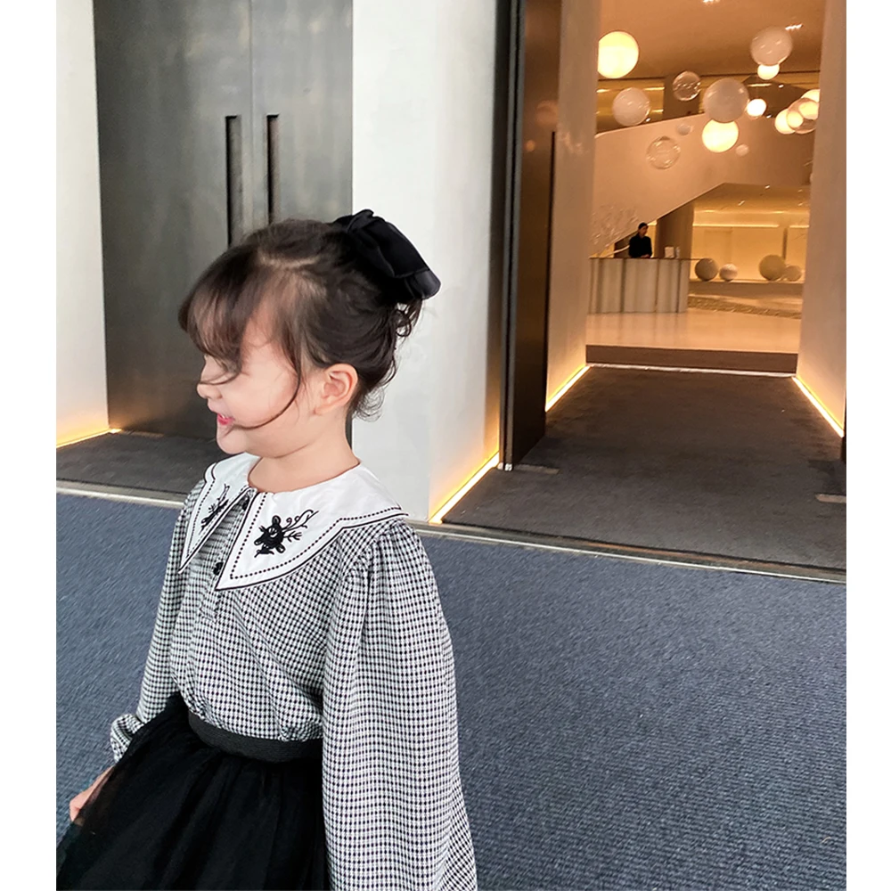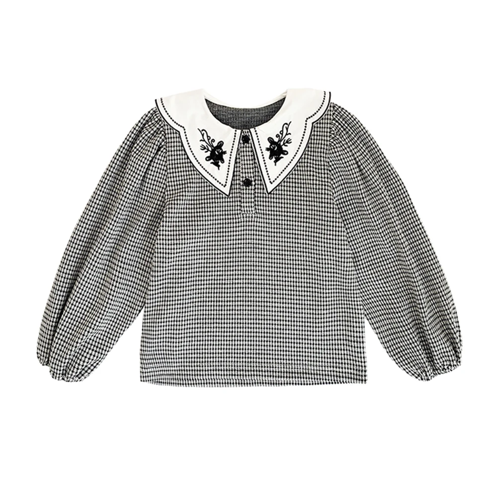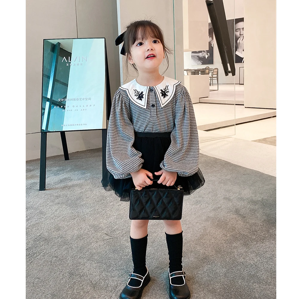 Q1349 Lovely Girls Plaid Blouses Full Sleeve Knitted Kids T-shirt