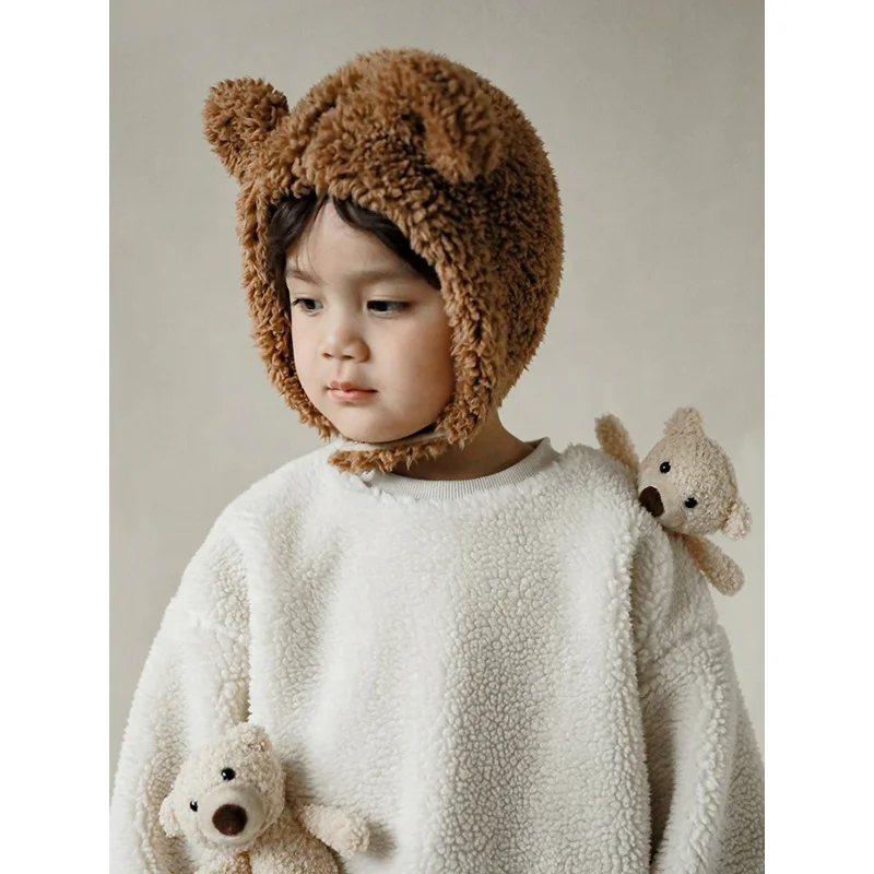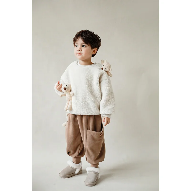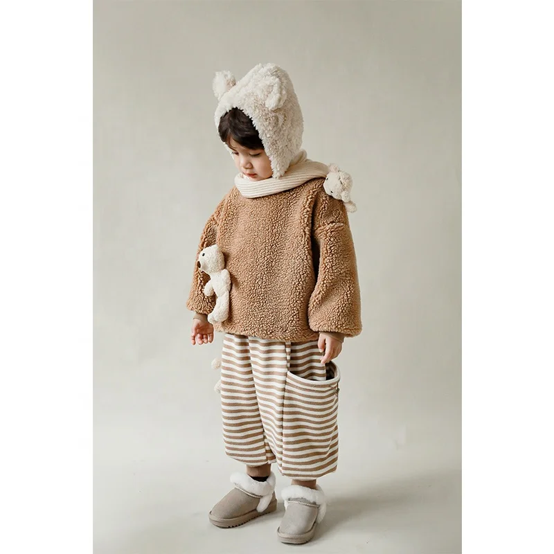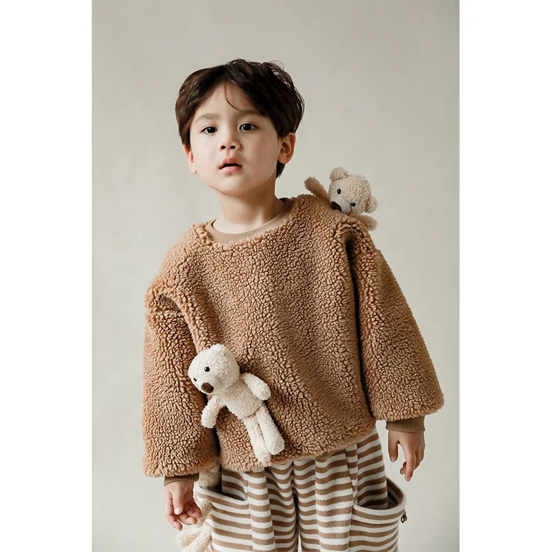 N1235 Plush Fleece Sweatshirts Hoodie Pullover Children Sweatshirts with Lovely Bear Doll Custom OEM for Winter High Quality