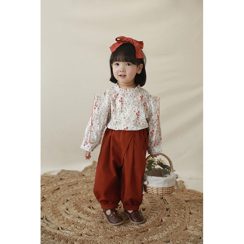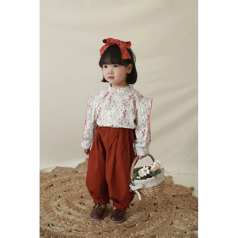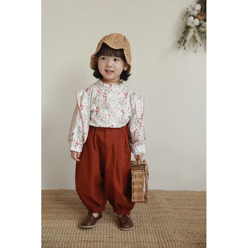C1322 New Arrival Beautiful Girls Blouse 100% Cotton Shirt Flora Pattern Kids Clothes for Spring