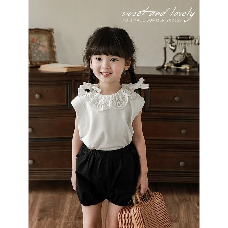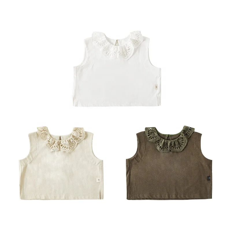 Summer 100% Cotton Lace Collar Elegant Kids Girls Tank Baby Girl Cozy High Quality Sleeveless T-shirt Hot Sale Kid Clothing