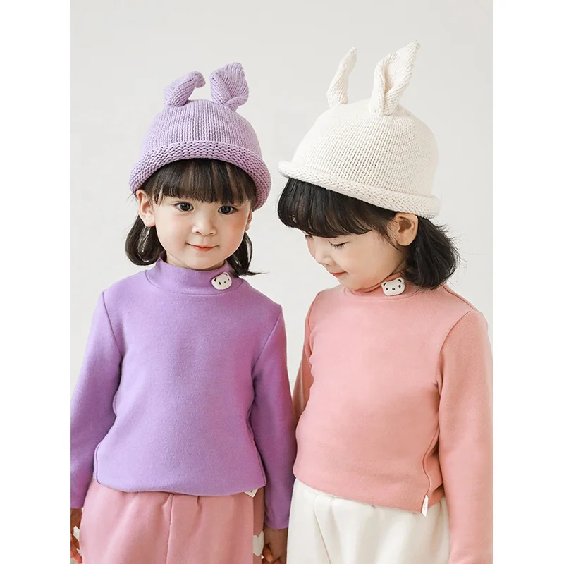 Children's Long Sleeve Top Apparel Customizable Plain Washed Ripped Tee Basic Layering Shirt Multi Colors