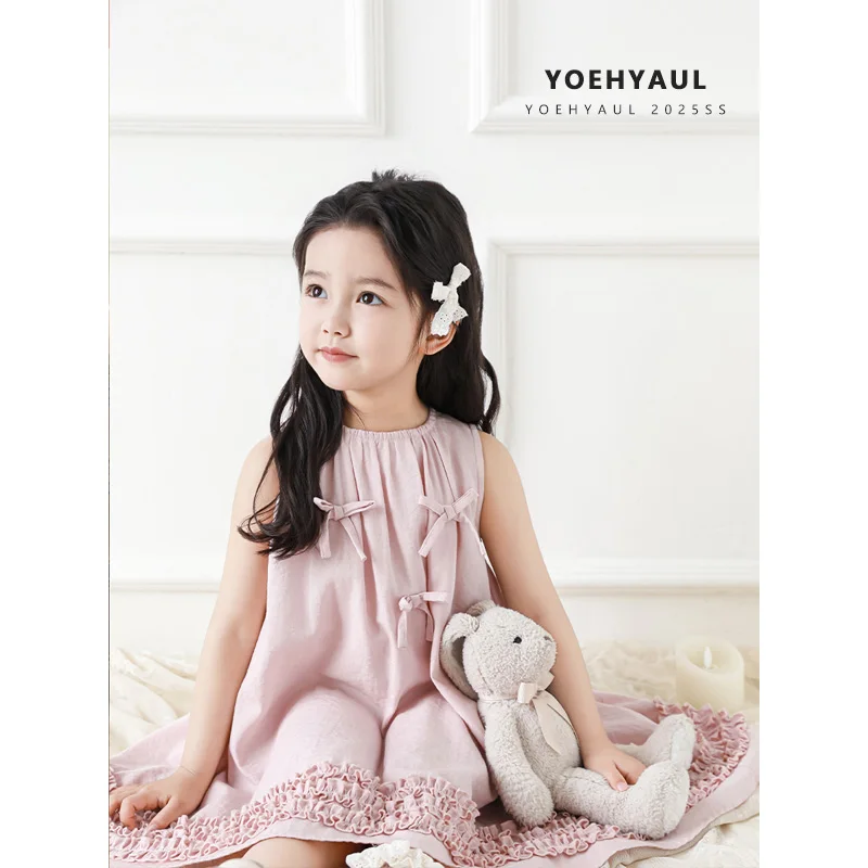 YOEHYAUL X5175 Factory Custom Logo Sleeveless Toddler Dresses Girls Plain Baby Girl Summer Dress for Children