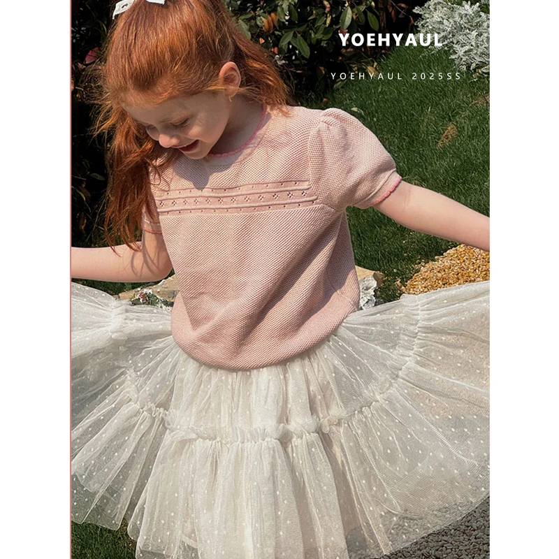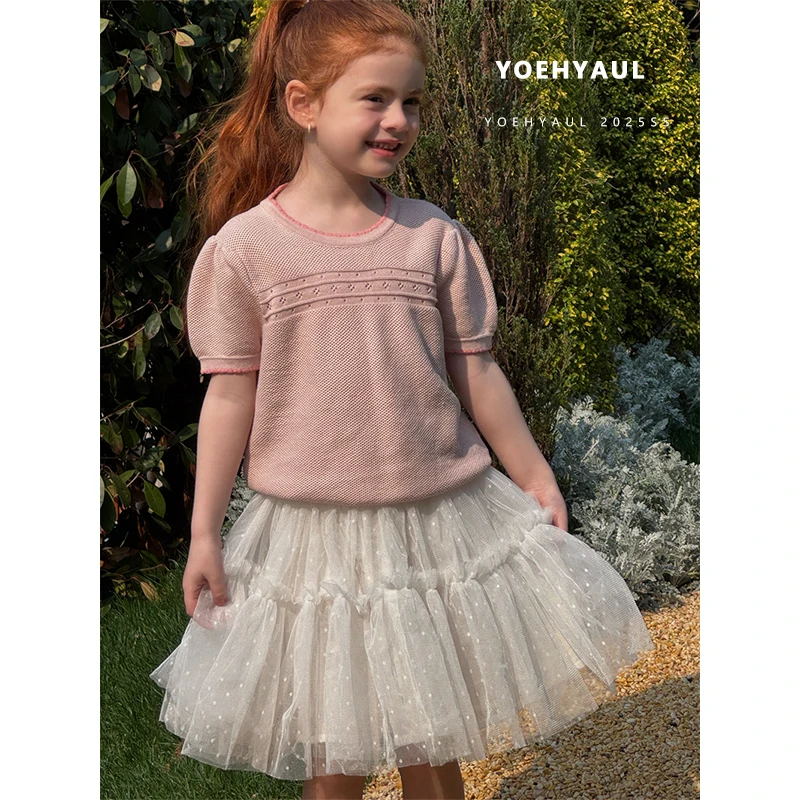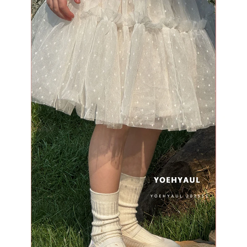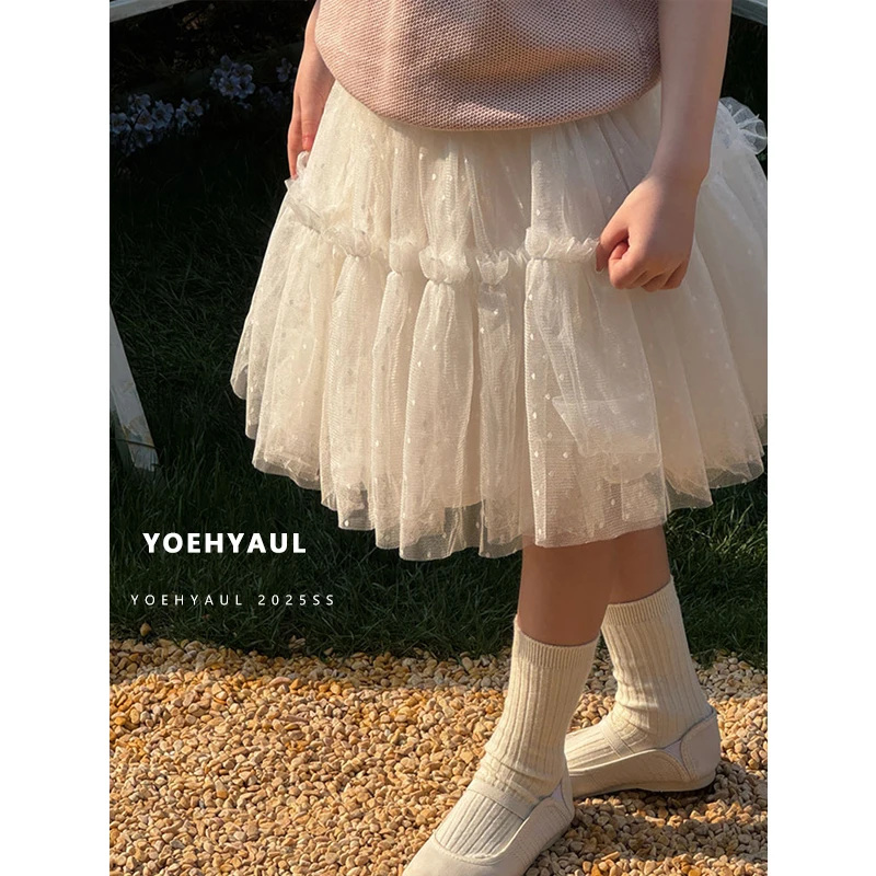 YOEHYAUL 9012 Summer Beige Sweet Kids Tutu Skirts for Girls Kids 2-8T Cotton Lining Dot Toddler Child Tulle Skirt Girl