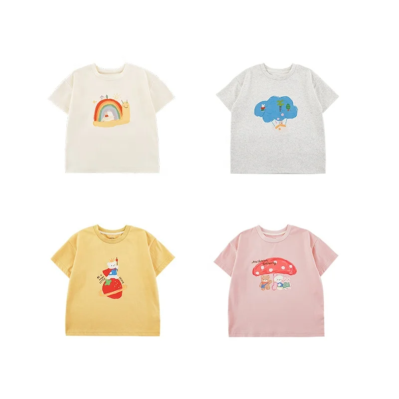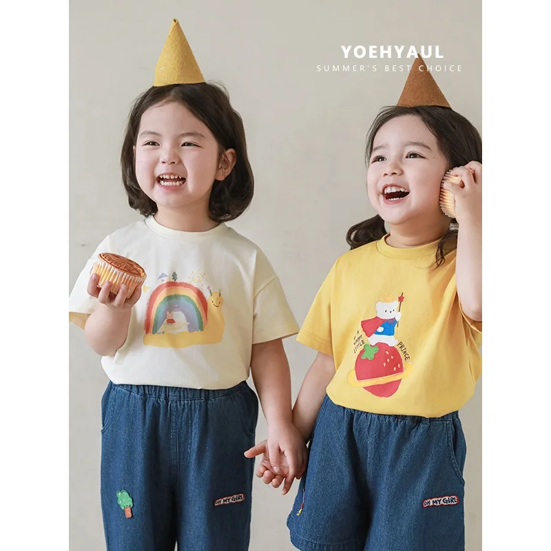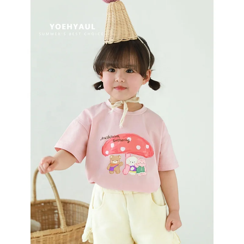 YOEHYAUL Summer T-shirt Baby Girls Short Sleeve High Quality Wholesale Cotton Kids Girls Clothing Oversize Tee Cartoon T-shirt