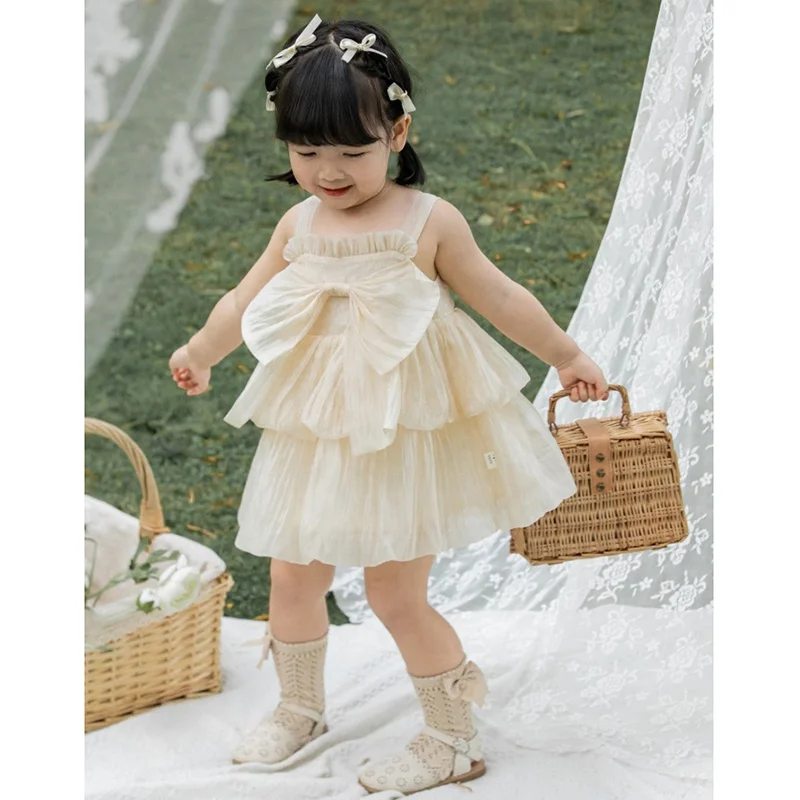 Toddler Girls Dresses With Bow Summer Sleeveless Kids Cake Dress Organza Fancy Princess Dress