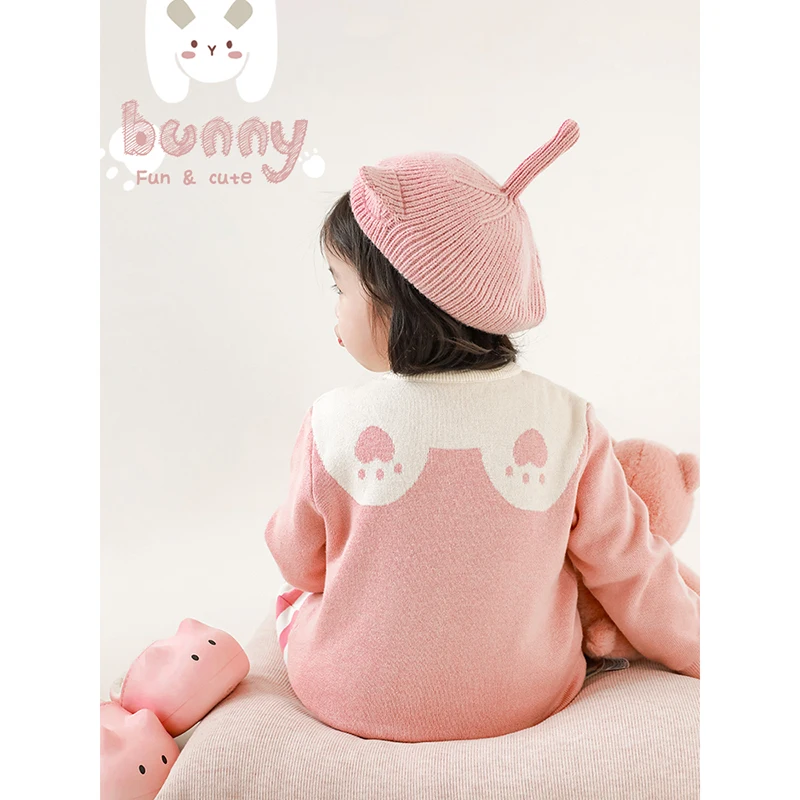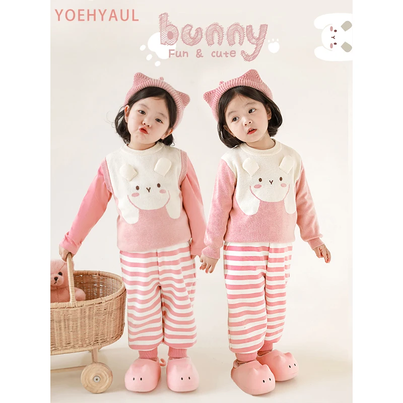 2023 Autumn Winter Children Girls' Cute Cylindrical Jacquard Top Children's Warm and Fun Ribbed Edge Sweater and Vest