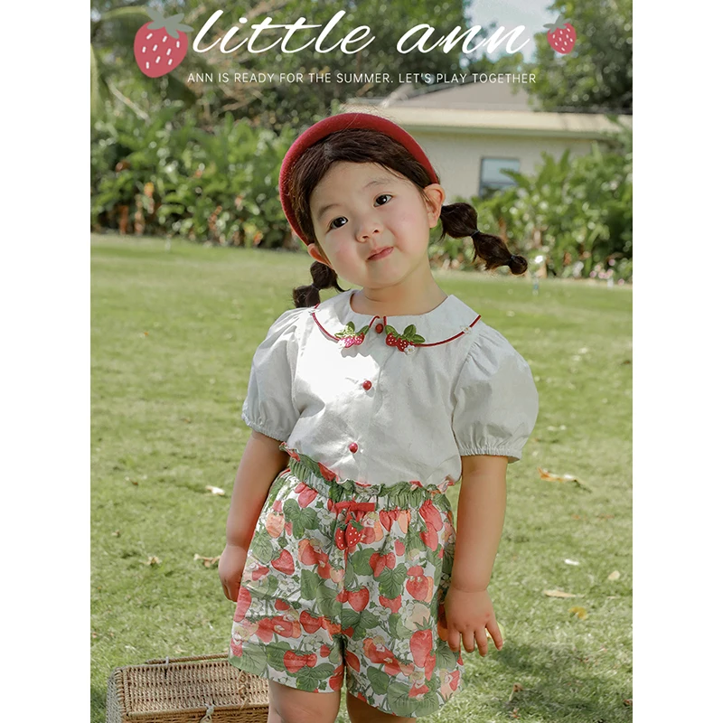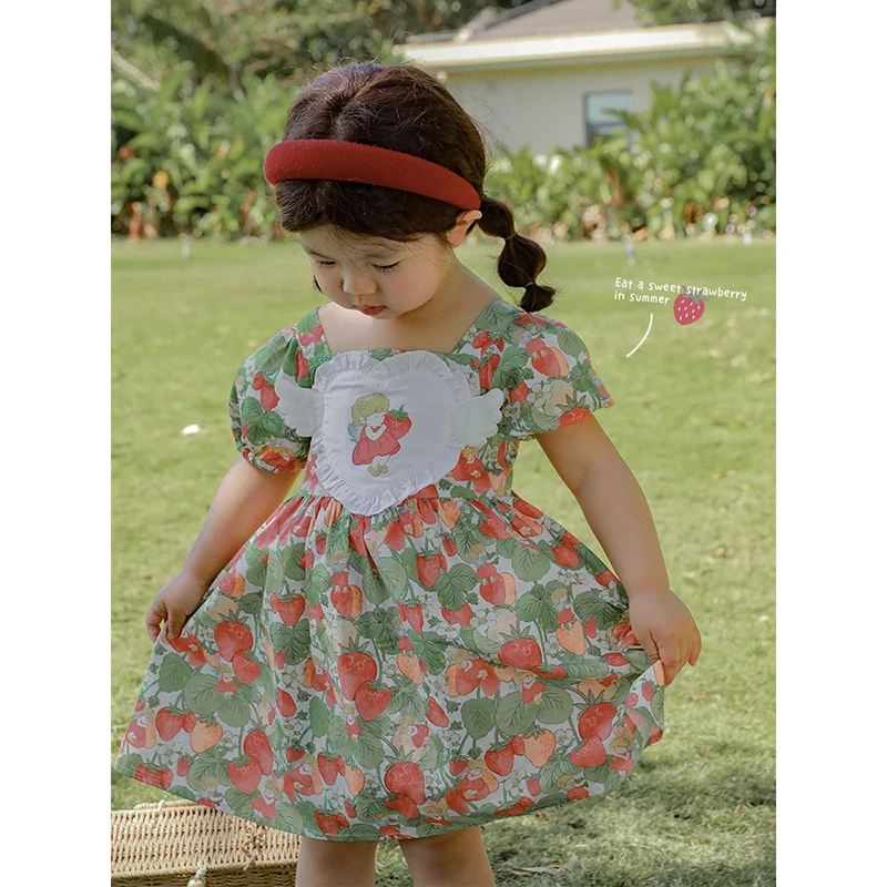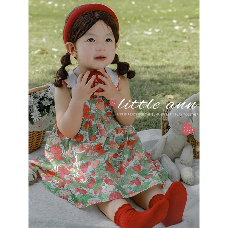 Factory Custom Floral New Dresses for Girls Cotton Cute Strawberry Print Baby Loose Skirt Pants Sets Toddler Dresses Girls