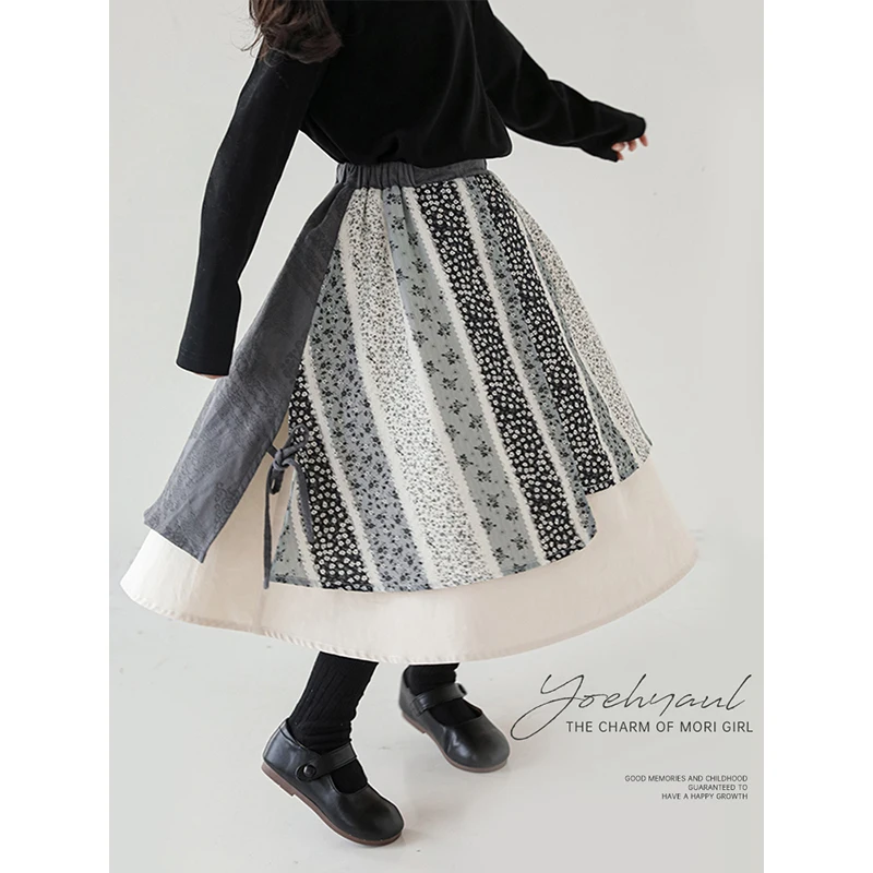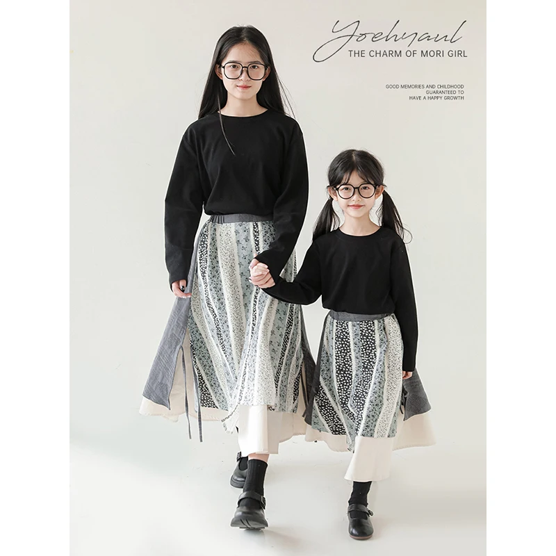 Big Children Skirt Spring and Autumn Retro Simple Pastoral Style Large Size Skirt Autumn Side Slit Fashionable Skirt