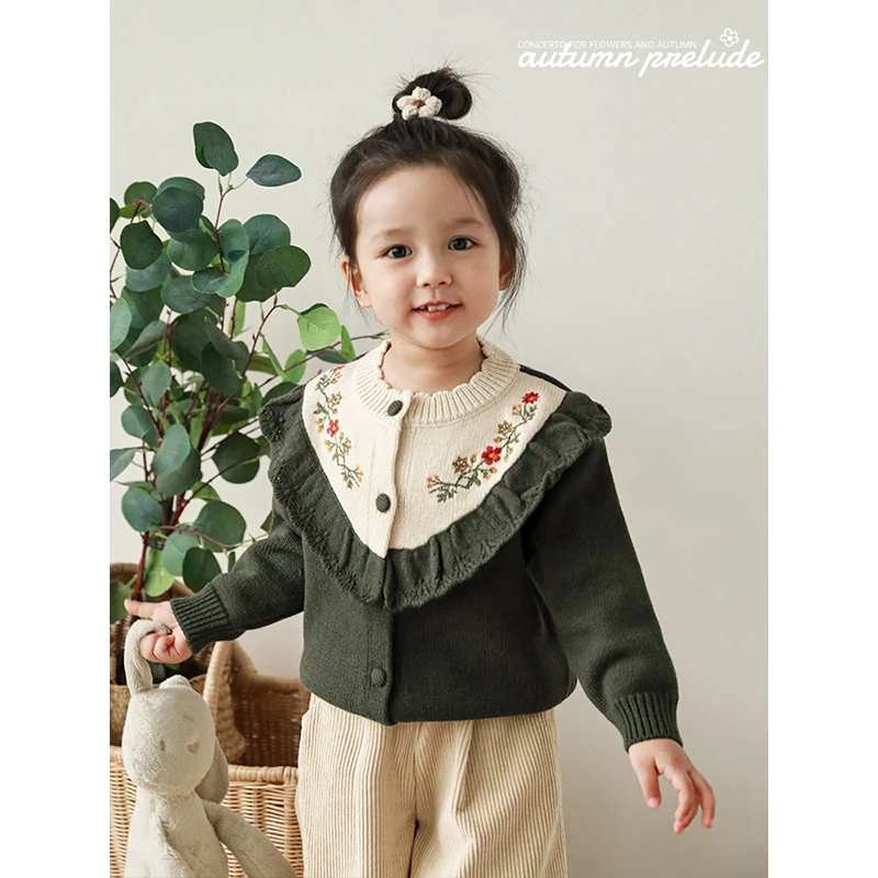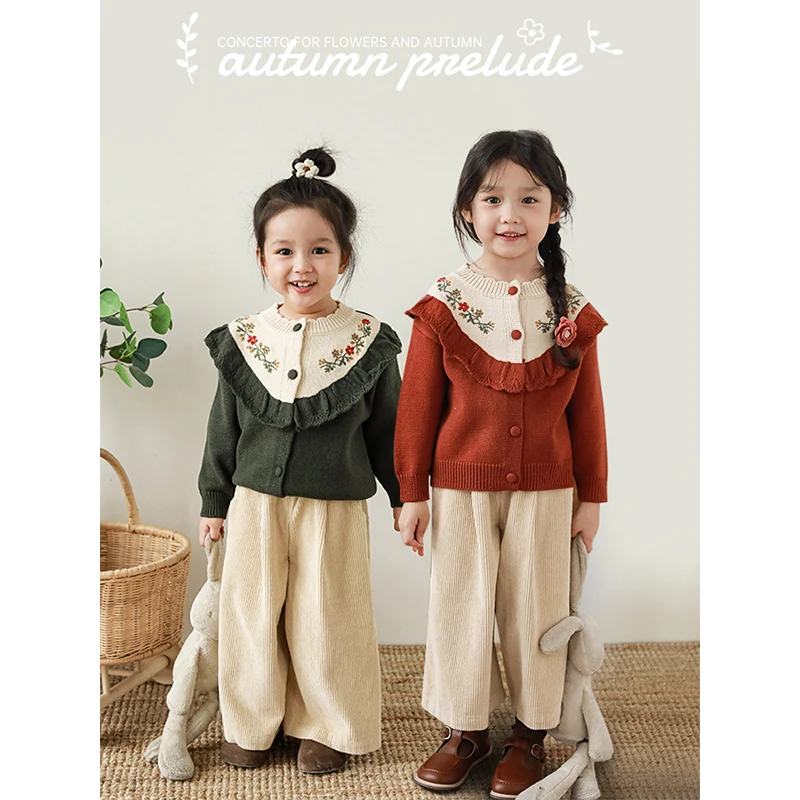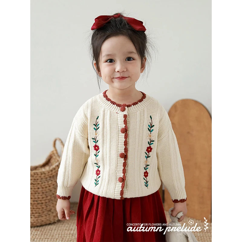 Girls Handmade Crochet Flower Vine Embroidered Sweater Autumn Winter Children's Red Color Fashion Cute Warm Top