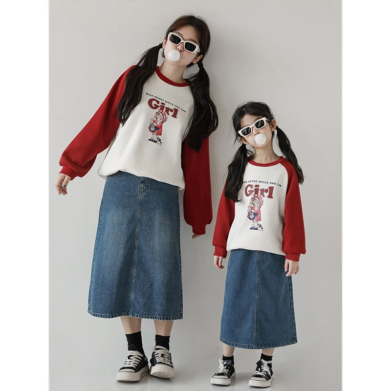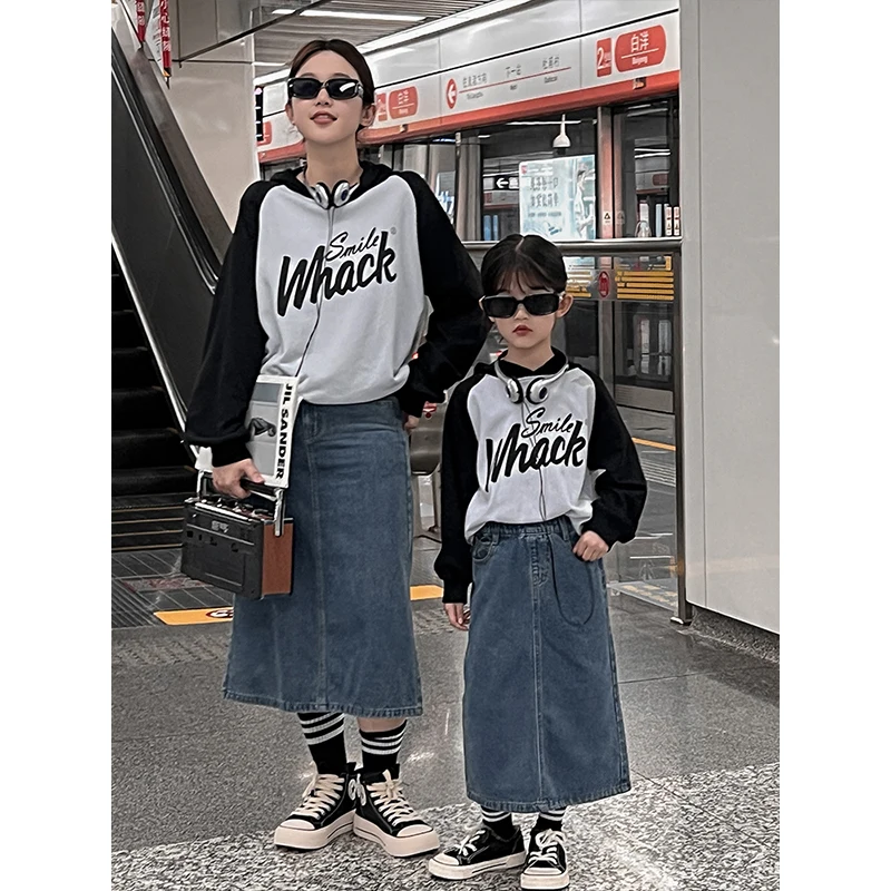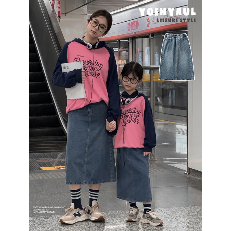 Girls Skirts Spring and Autumn Large Size Loose A-Line Skirt Versatile Korean Style Big Child Parent-Child Denim Skirt