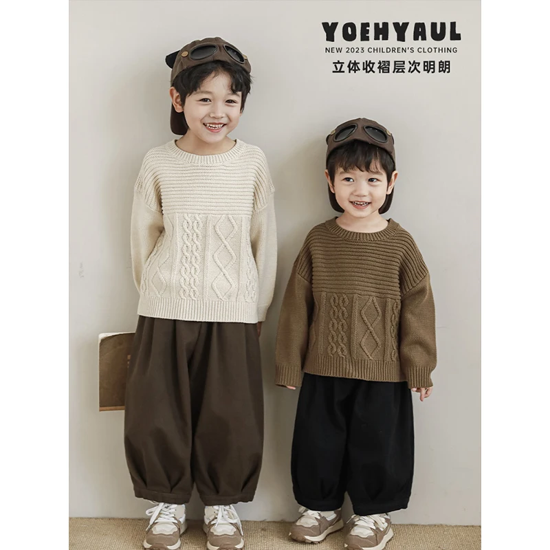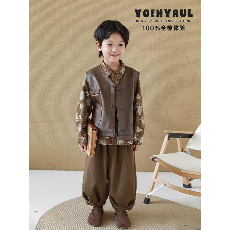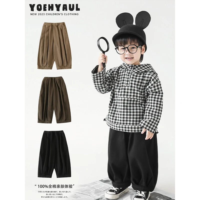 Boys' Patchwork Three-Dimensional Pleated Loose Trousers Autumn New Simple and Versatile Japan Style Casual Pants