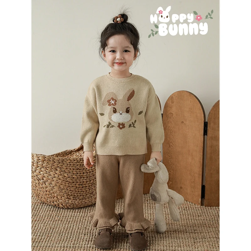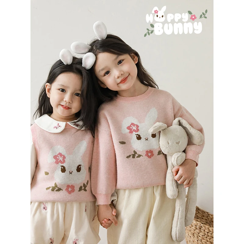 Girls Autumn Winter Suit Children's Cute Embroidered Doll Collar Shirt Embroidered Bunny Sweater Vest Top