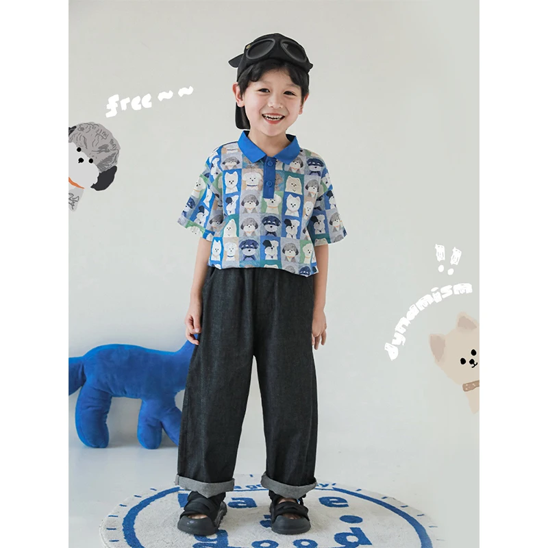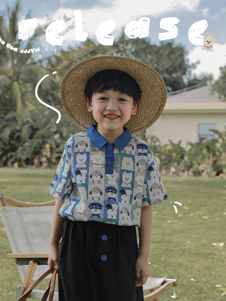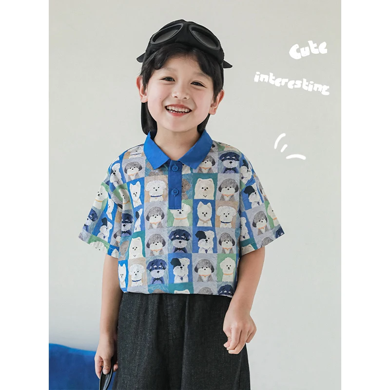 Fashion Polo Shirts Casual Dog Cartoon T-shirt Summer Clothes Baby Boys High Quality Wholesale Pure Cotton Soft Kids Clothing