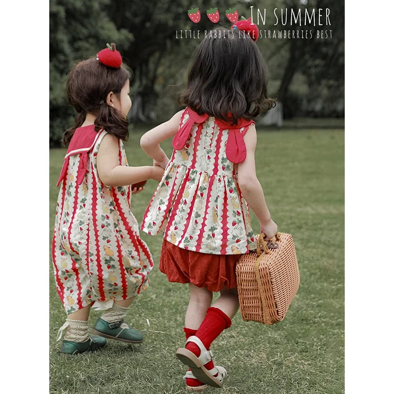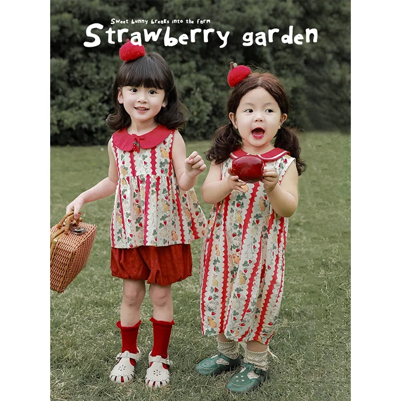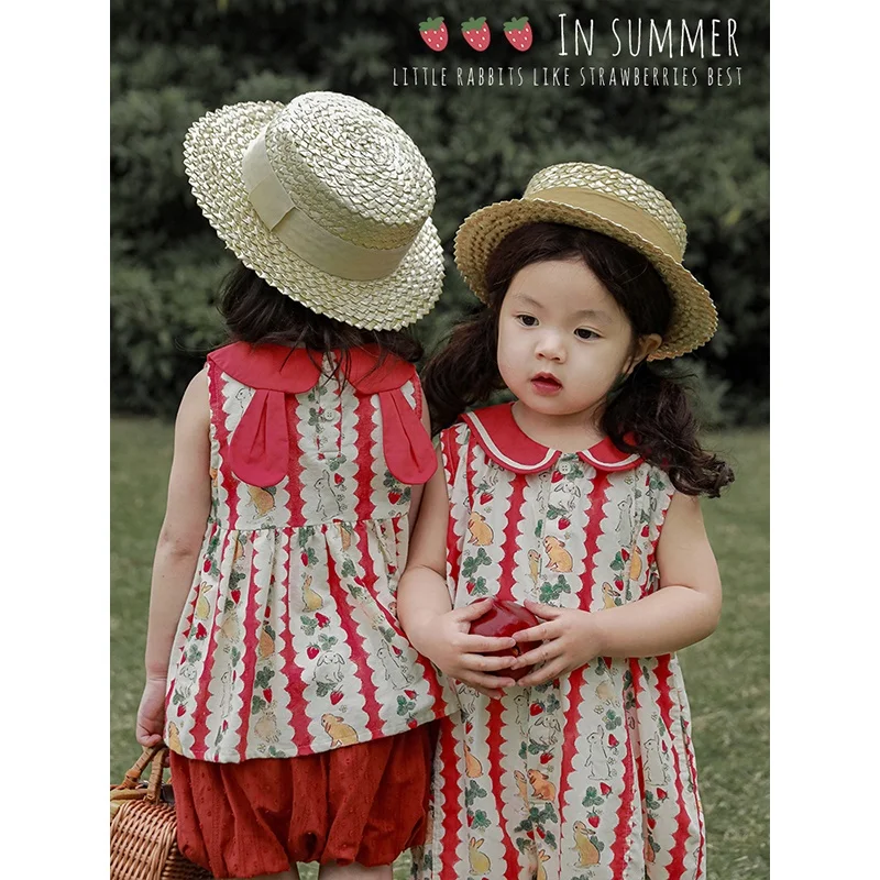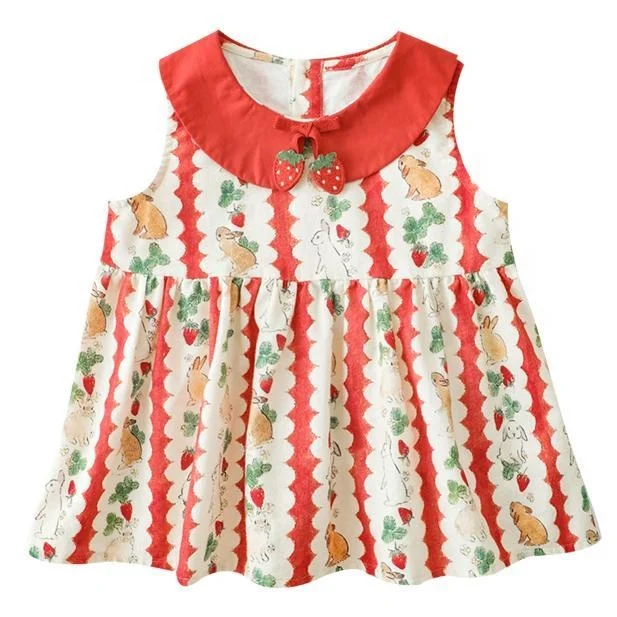 Summer High Quality 100%Cotton Children Red Pattern Dress Flowers Sleeveless&Peter Pan Collar Dress Little Girls Floral Dresses