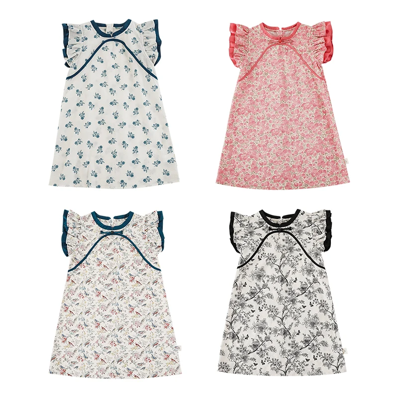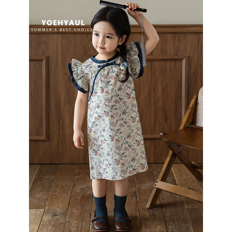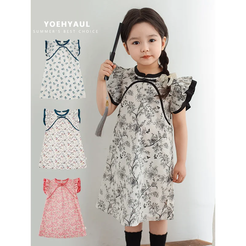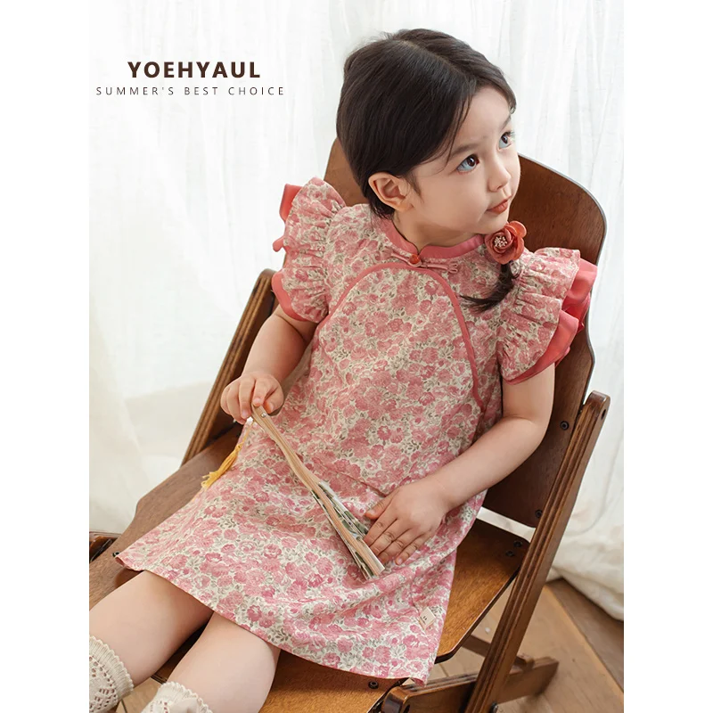 YOEHYAUL X4353 Qipao Summer Sleeveless Kids Cotton Dresses for Girls Pink Dress Kid Sale for Girl Dress