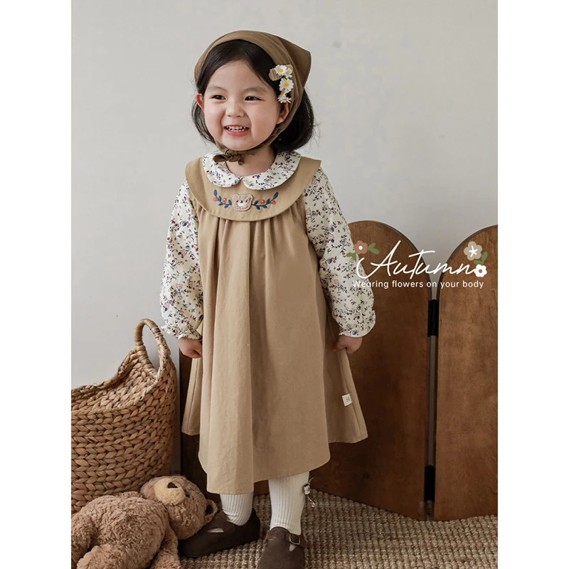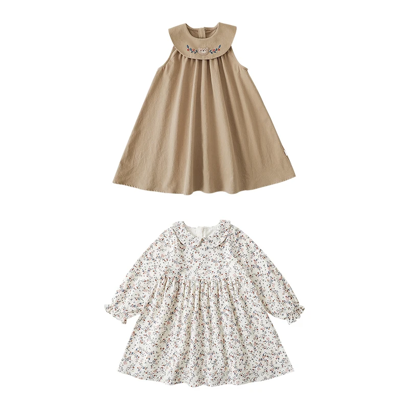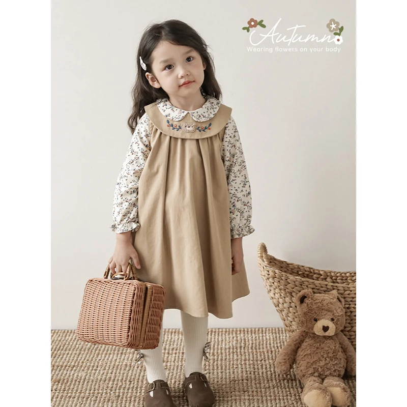 YOEHYAUL High Quality Doll Lapel A-Line Cute Dress Children's Fresh and Colorful Digitally Printed Embroidered Skirt