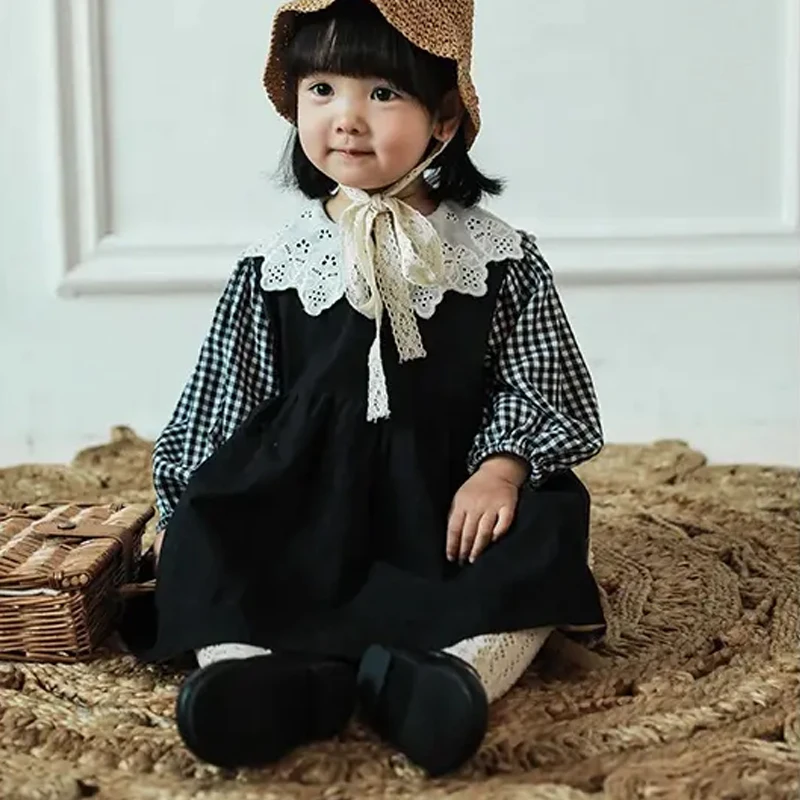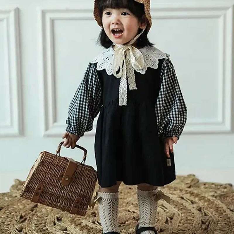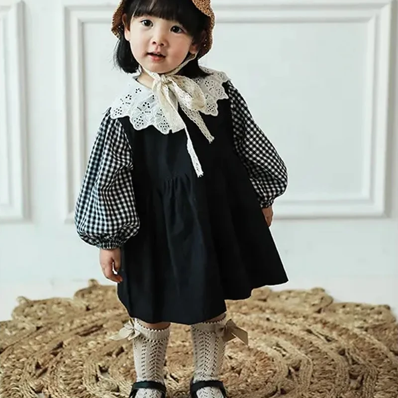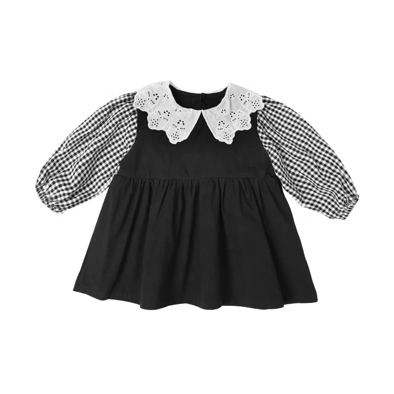 New Arrival Spring Fall Sweet Baby Girl Dress Long Sleeve 1-2years Lovely Plaid Puff Sleeve Cotton Dress Girls Kids
