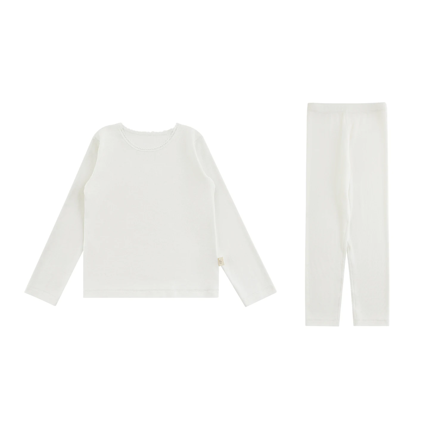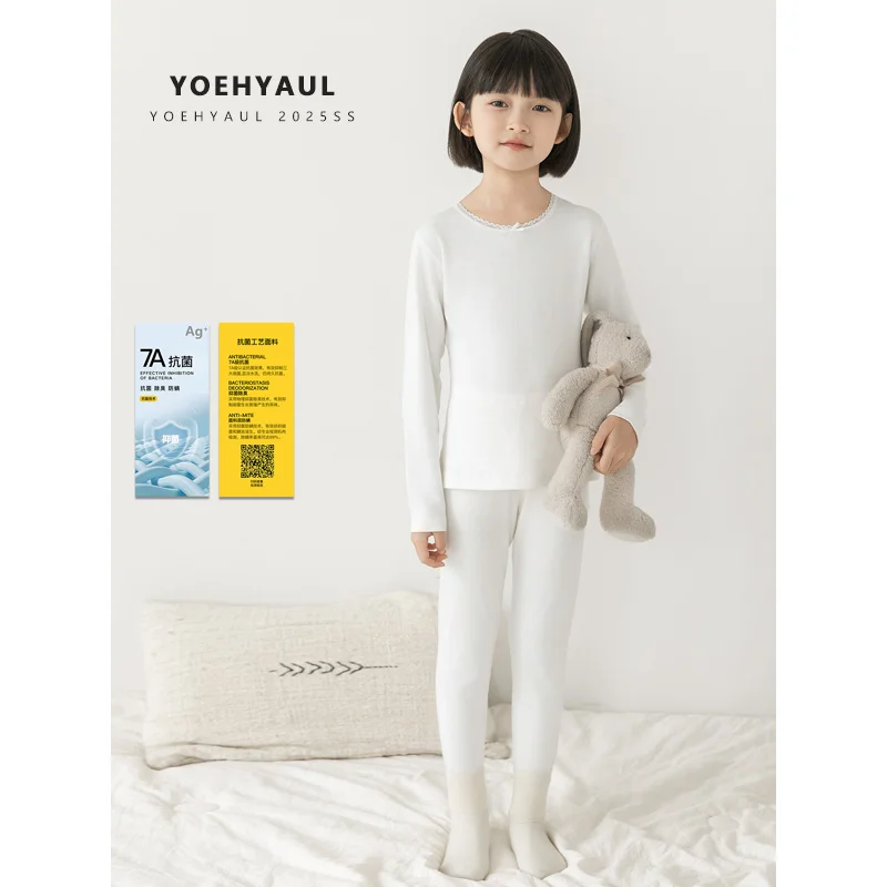 YOEHYAUL CD1969 Girl 2 Pieces Pajamas Warm Soft Breathable Children's Pajamas Set Pure White Lace Collar for Teenagers Underwear