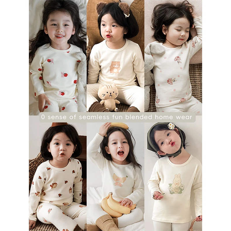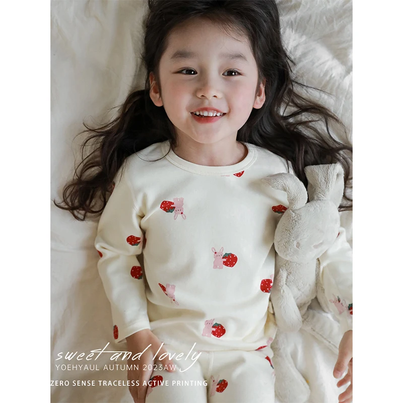 2023 New Autumn Girls Home Clothes Set Children's Playful and Cute Cartoon Animal Pajamas Two-piece Set
