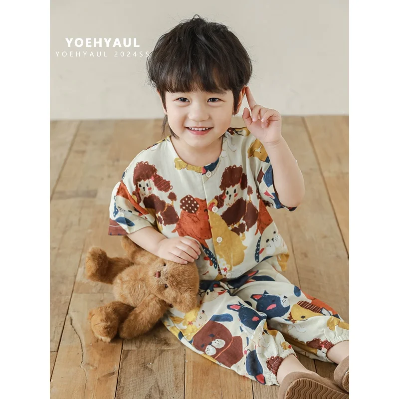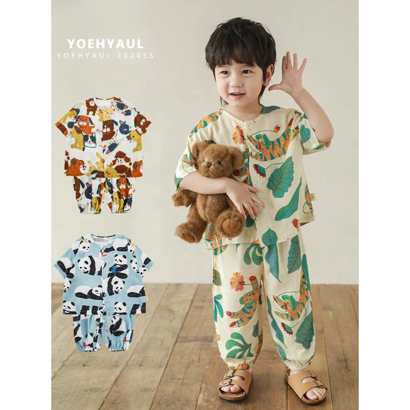 YOEHYAUL N4051 Cartoon Cute Digital Print High Quality Loungewear Children Suit Homewear Boys Pyjamas Nightwear Kids Sleepwear