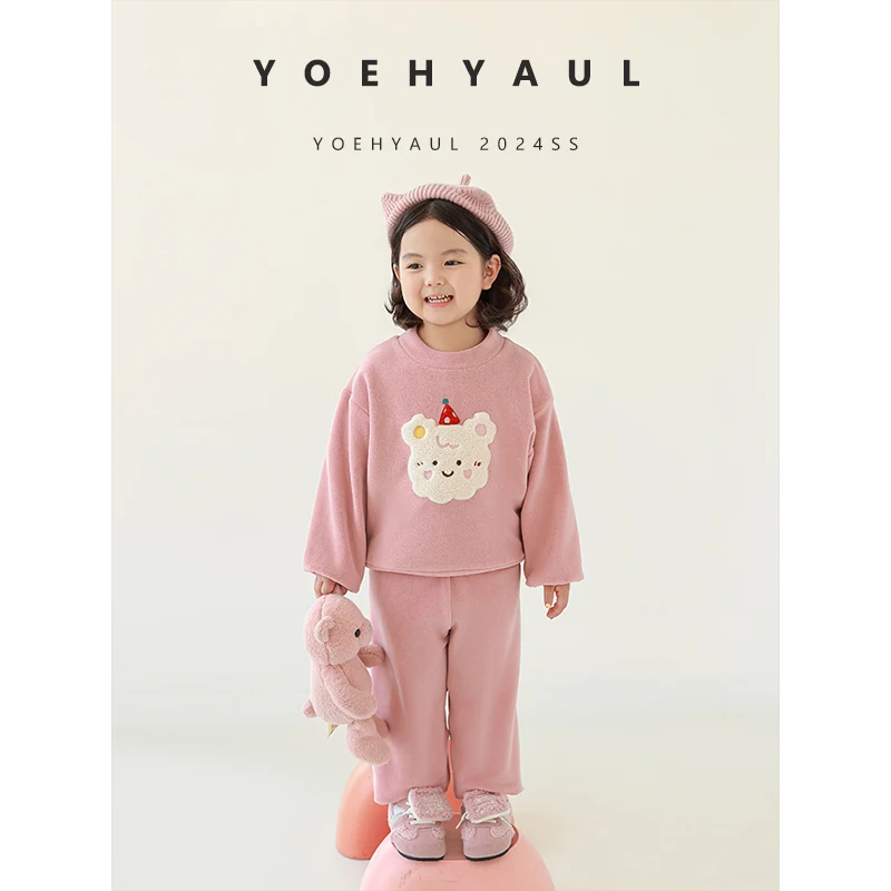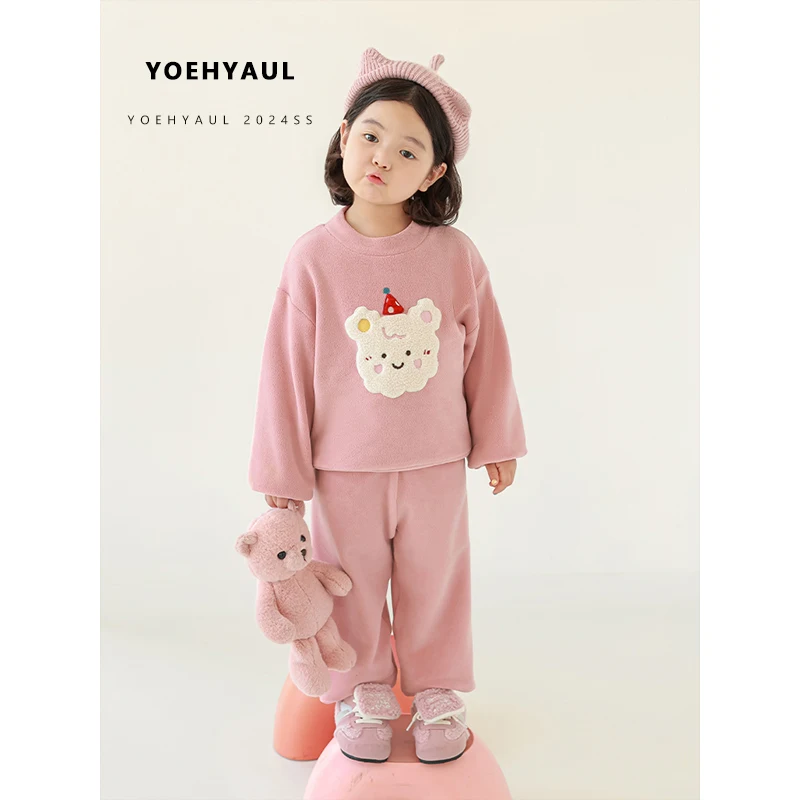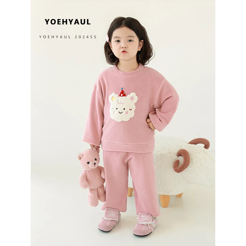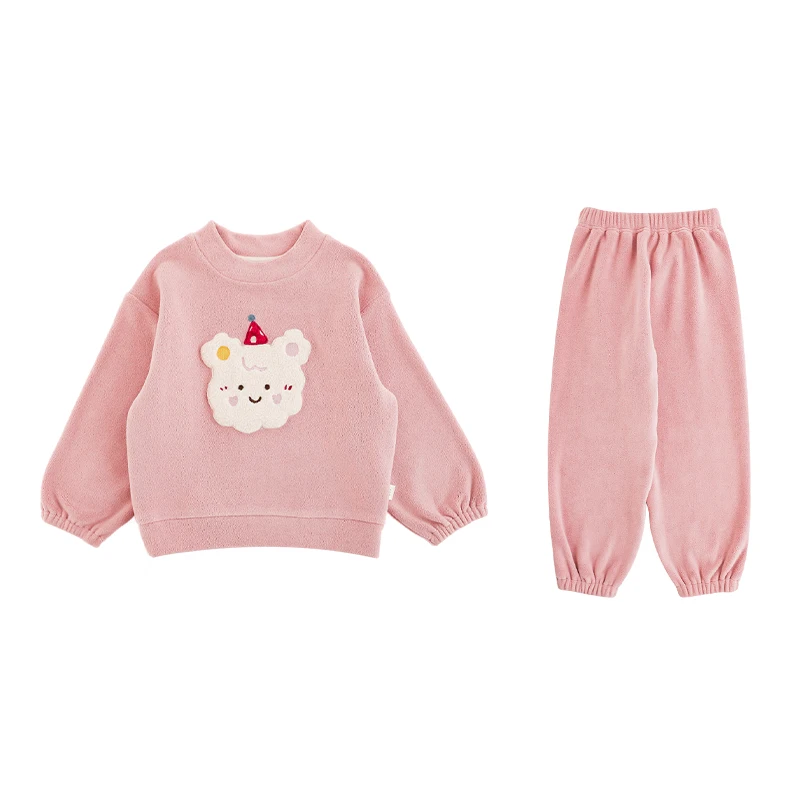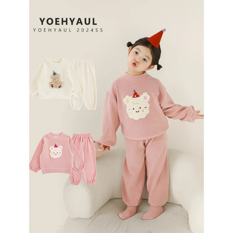 YOEHYAUL GD3457 Unisex Thick Children's Pajamas Winter Set Homewear 2 Pieces Cute Baby Girl Kids Sleepwear for Girls and Boys