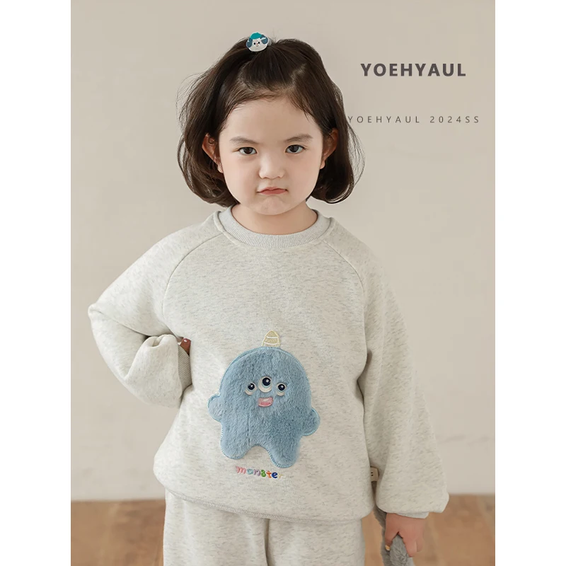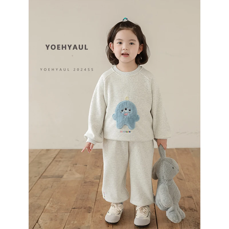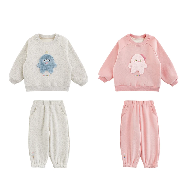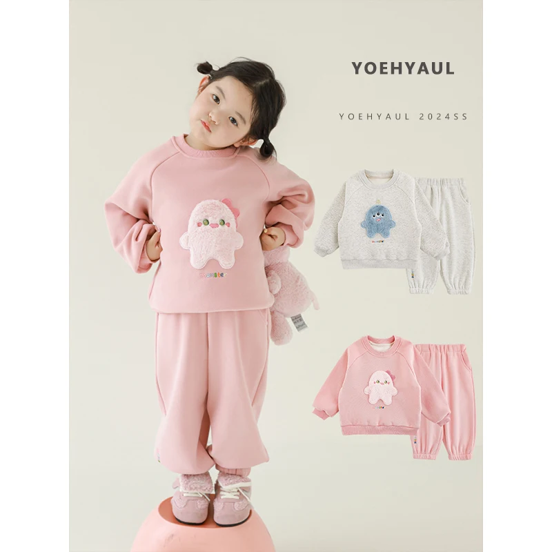 YOEHYAUL D3990 Factory Custom Logo Fleece Baby Girl Sweatshirt Sets Cartoon Warm Toddler Kids Sweatsuits Sets Winter