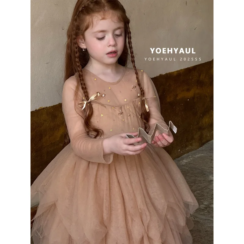 YOEHYAUL 25181 Vintage Little Girls Fancy Dress Princess Cotton Lining Tulle Luxury Kids Event Girl Dress Party Wear