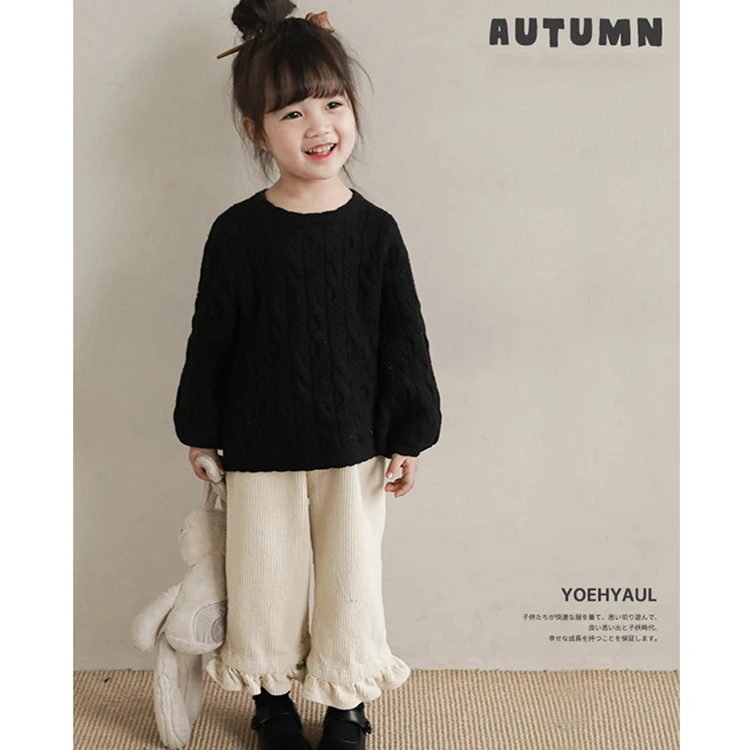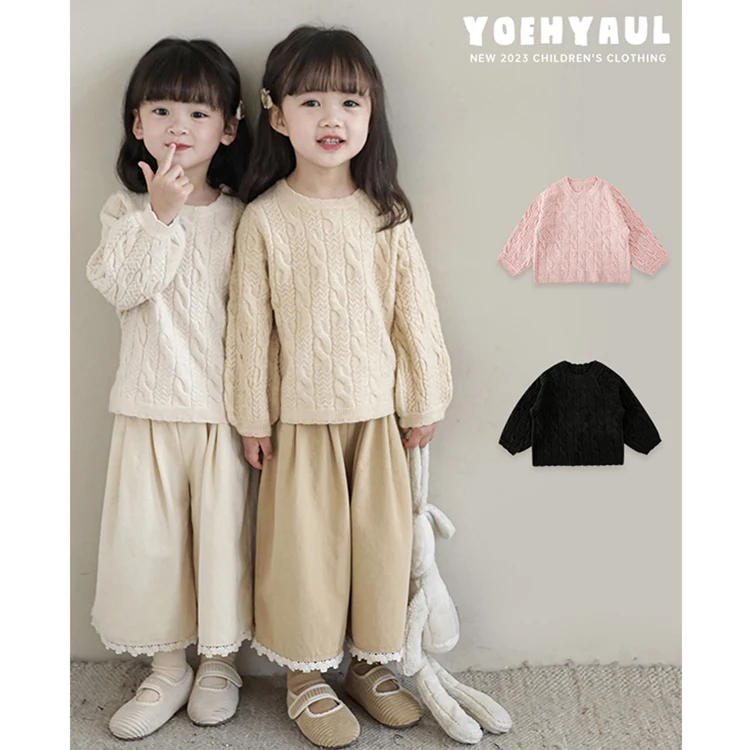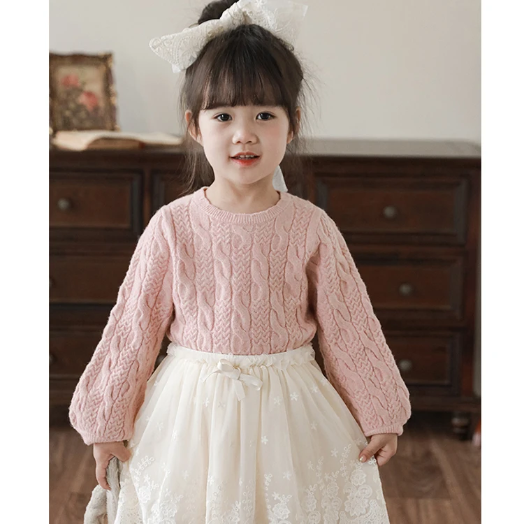 Wholesale Wavy Hem Plus Size Sweater for Kids Girls Children's Leisurely and Comfortable Cable Ribbed Oversized Kids Sweater