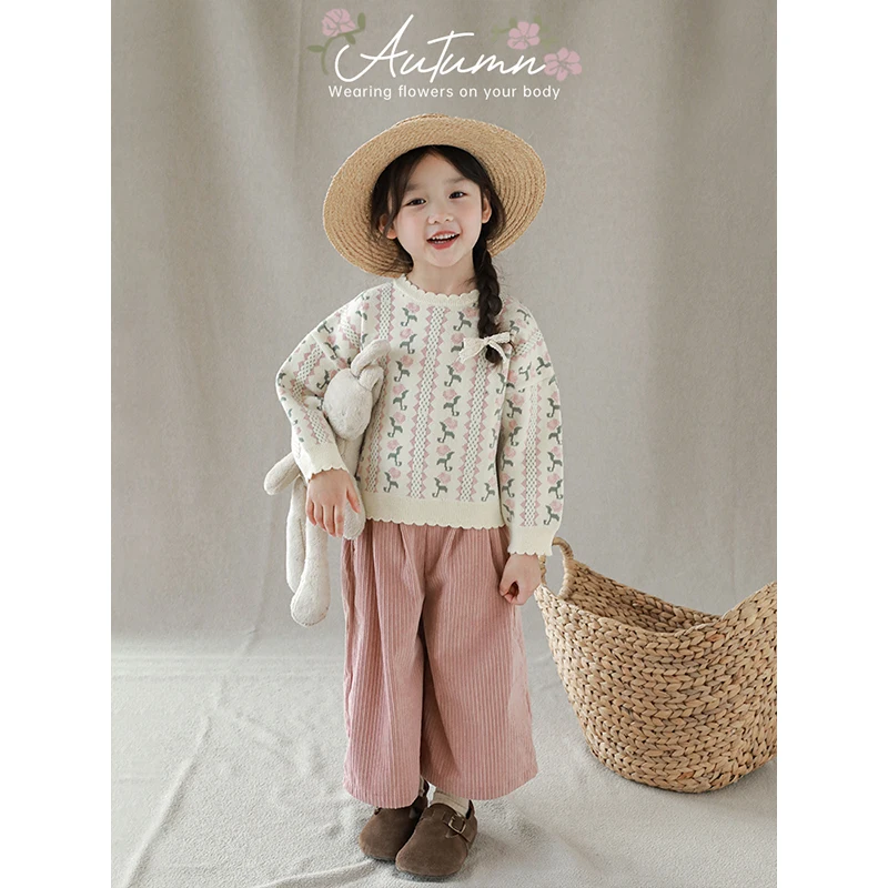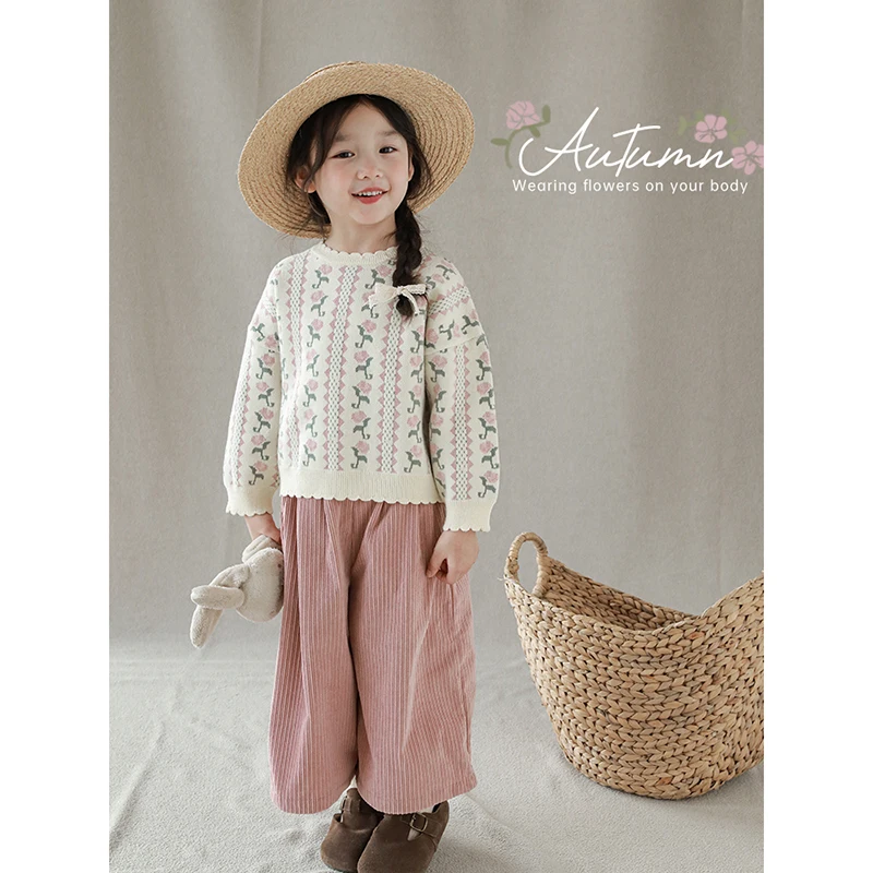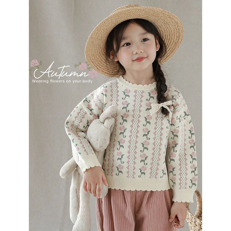 2023 Girls' Autumn Winter Soft Wavy Edge Sweater Children's Comfortable Warm and Casual Top