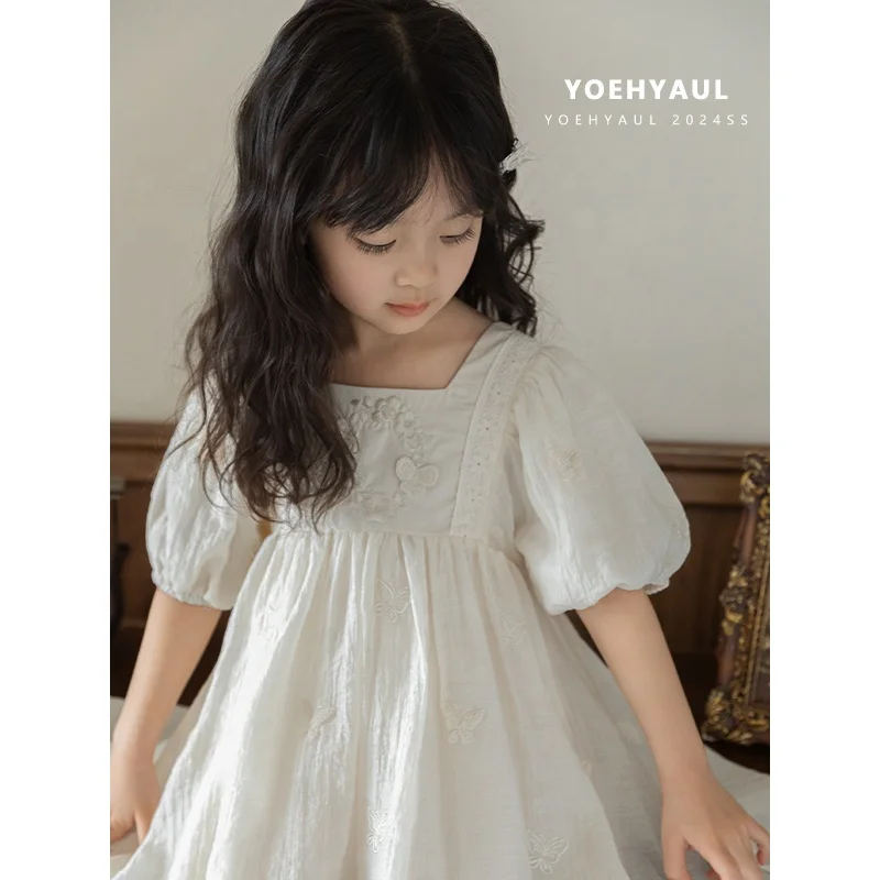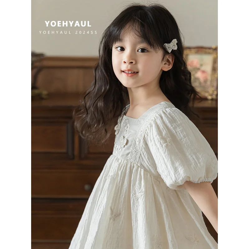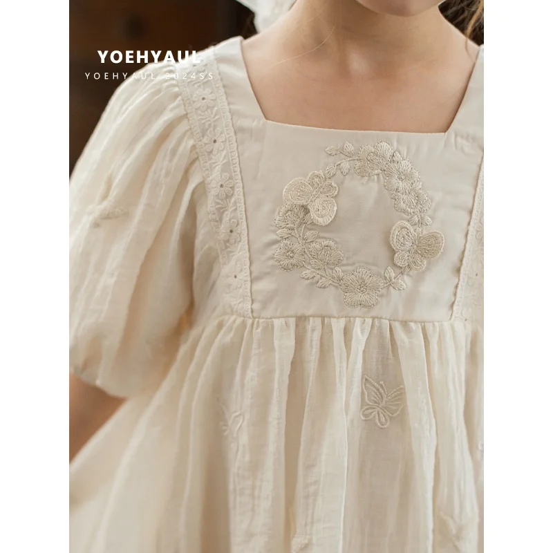 YOEHYAUL X4357-1 100% Cotton Floral Summer Girl Kid Dress Child Custom High Quality Puff Sleeve Toddler Kids Dresses for Girl