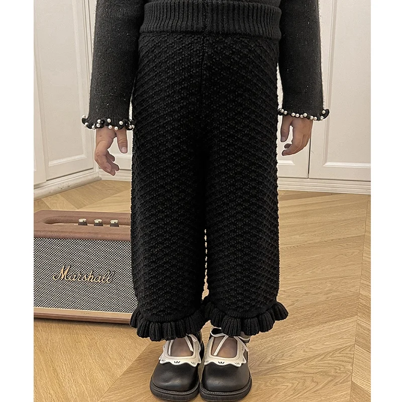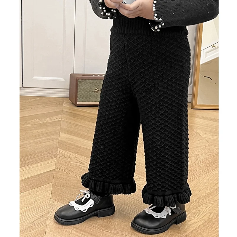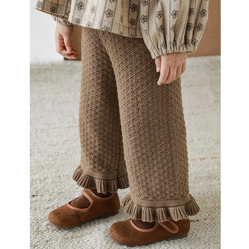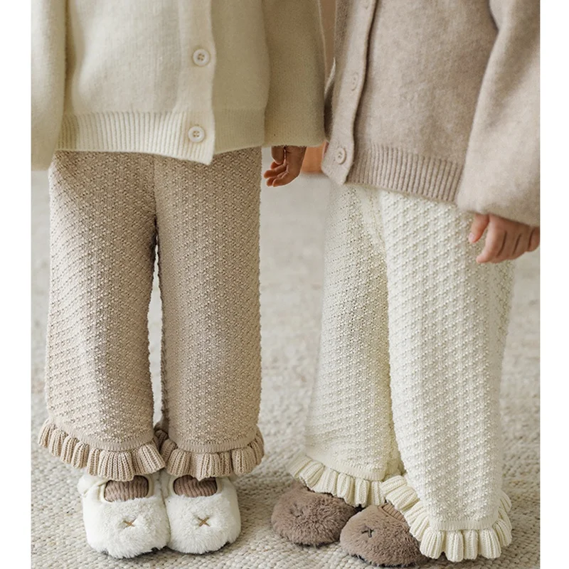 YOEHYAUL 100% Cotton Toddler Girls Pants High Waist Wide Led Girls Trousers Boutique Ruffle Knitted Kids Pants