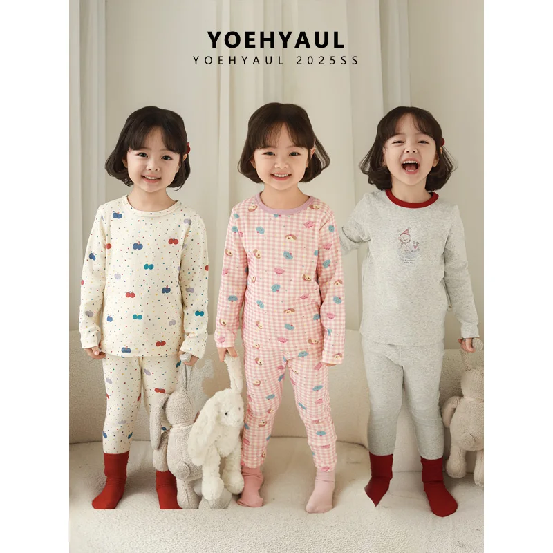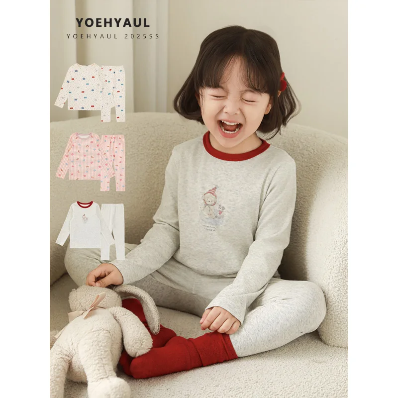 YOEHYAUL D4704 2 Pieces Warm Breathable Cartoon Pattern Pajamas Homewear Soft Kids Baby Girl Winter Sleepwear Pajamas Set
