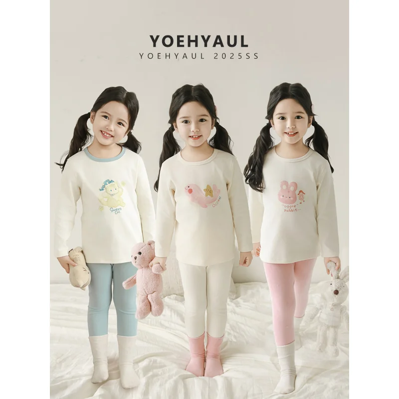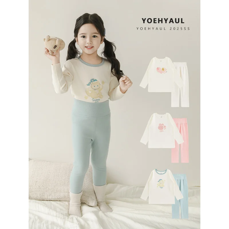 YOEHYAUL Q4527 2026 Autumn Warm Toddler Sleepwear for Kids Wholesale Cartoon Two Piece Cotton Pajamas for Girls Kids