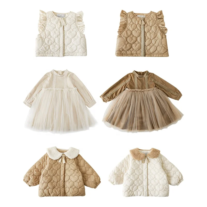 YOEHYAUL Winter&Autumn Exquisite Suit Baby Girls Clothes Wholesale Kids Solid Color Skirt Padded Jackets Sets
