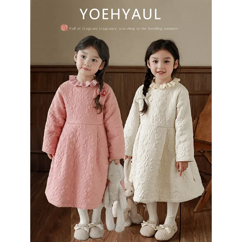 New Arrival Winter Dress Cotton Dresses Garment Girls High Quality Cotton-filled Wholesale Kids Girls Cotton-padded Dress
