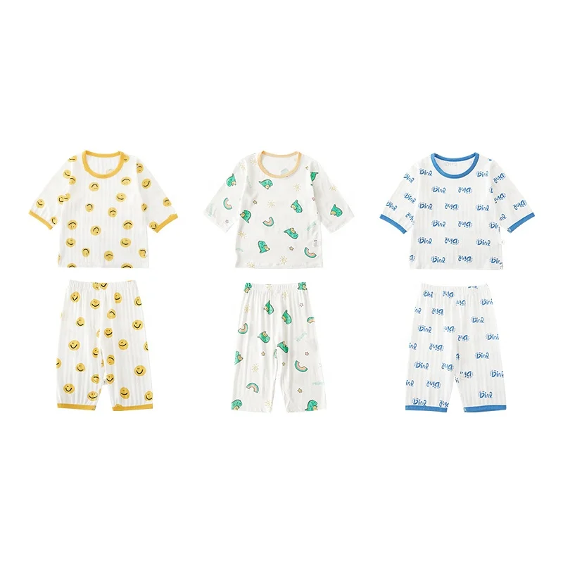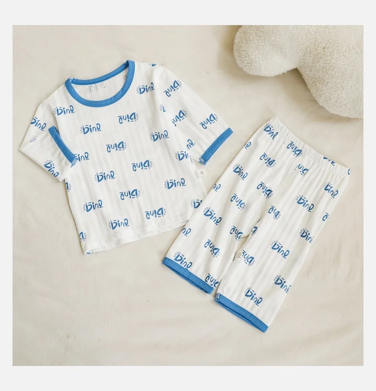 Cute Cartoon Print Custom Baby Boys Summer Pajamas Garments Hot Sale Wholesale Toddler Boys Night Wear Sleepwear