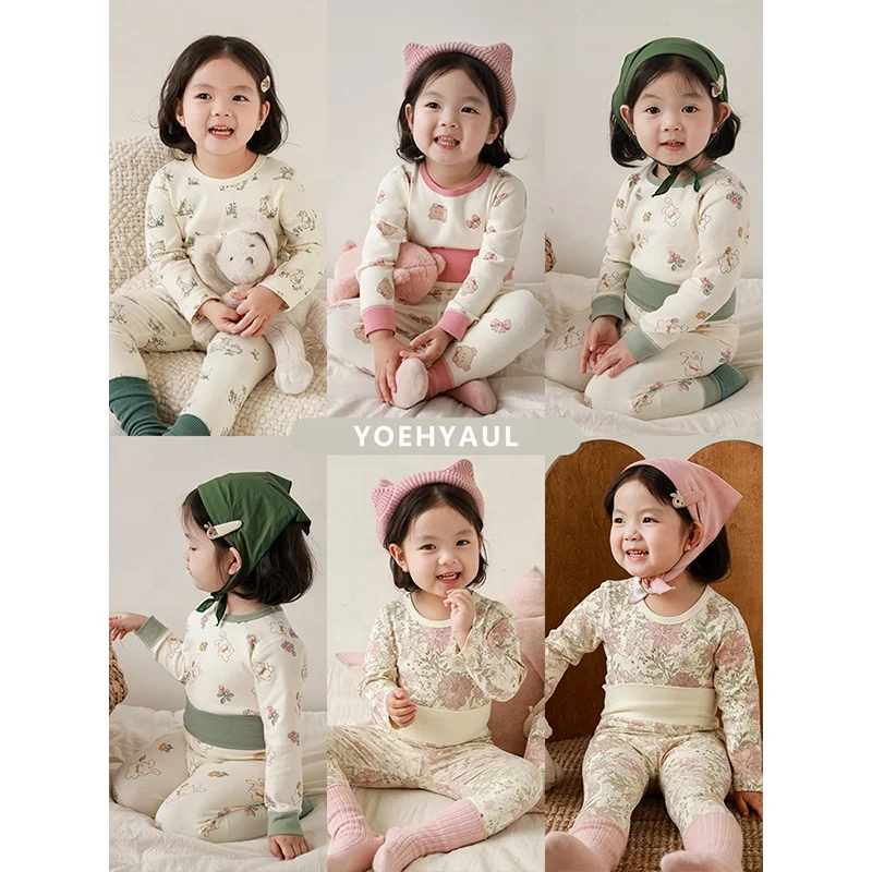 YOEHYAUL High Quality Washed Child Pajamas for Children Baby Cute Warm Night Wear Girls Sleepwear Kids Lingerie Pyjamas Set