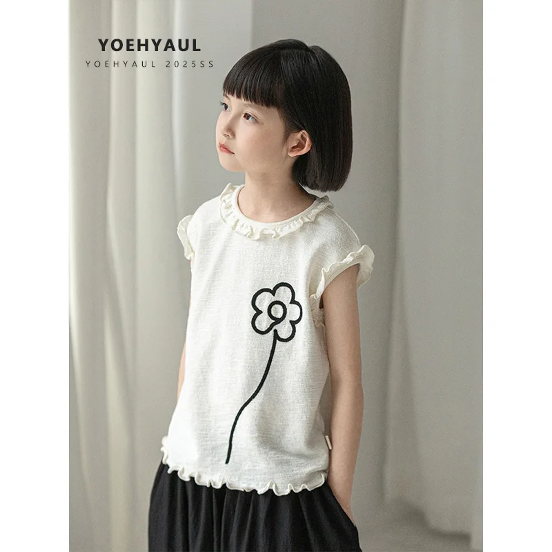 YOEHYAUL CD1552 Custom Logo Summer Big Girls Tshirts Wholesale Beige Teen Teenager Toddler Cotton T-shirt T Shirt for Kids